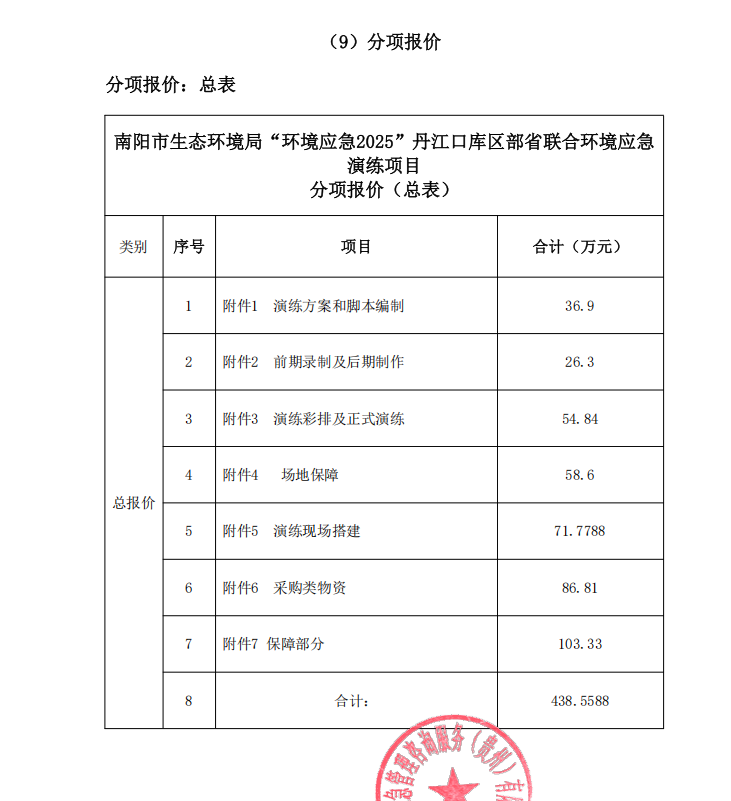 南阳市生态环境局“环境应急2025”丹江口库区部省联合环境应急演练项目-中标公告