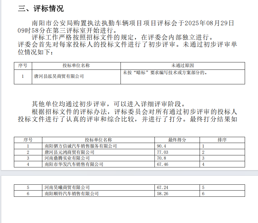 南阳市公安局购置执法执勤车辆项目-中标公告