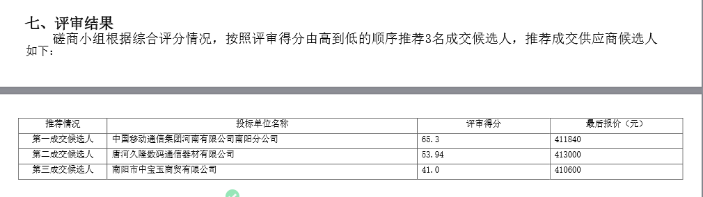 河南/南阳 中标结果