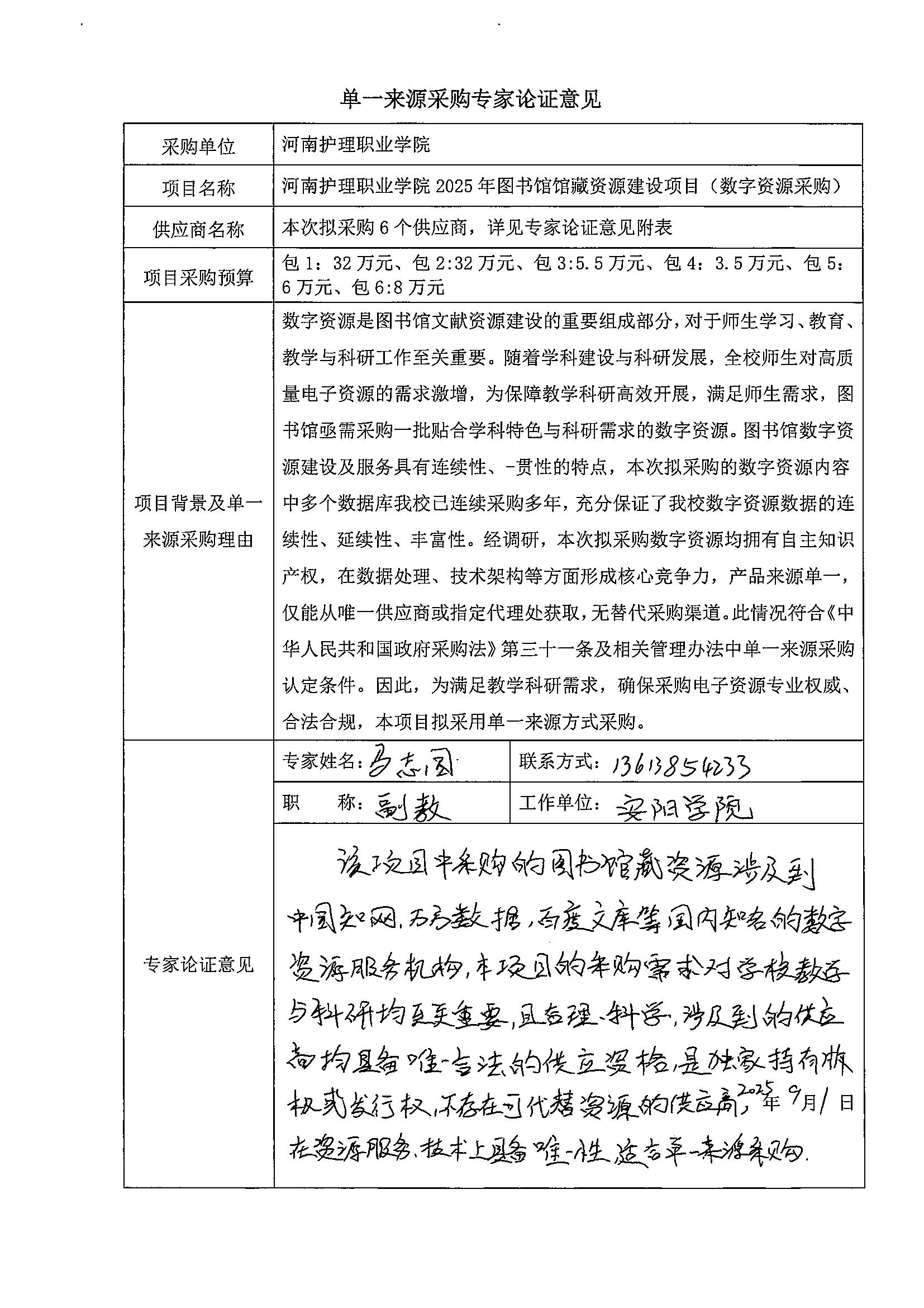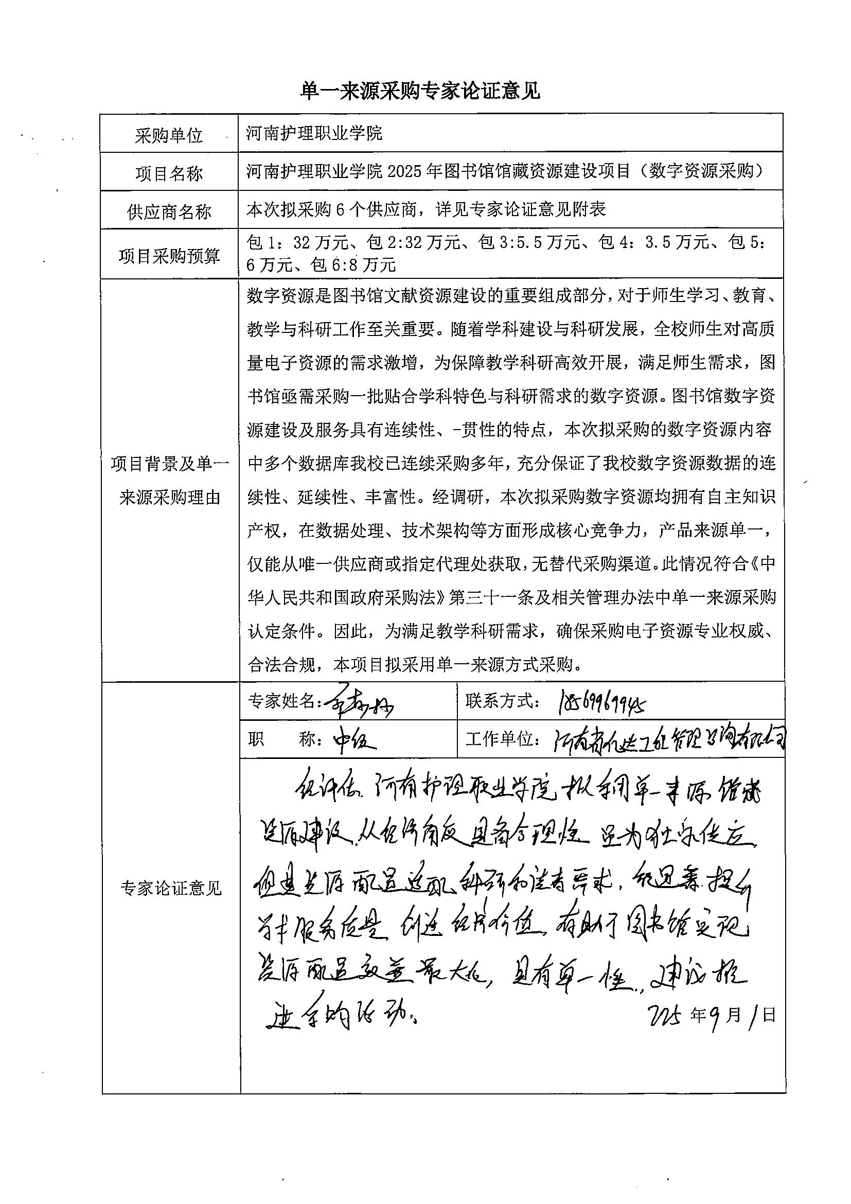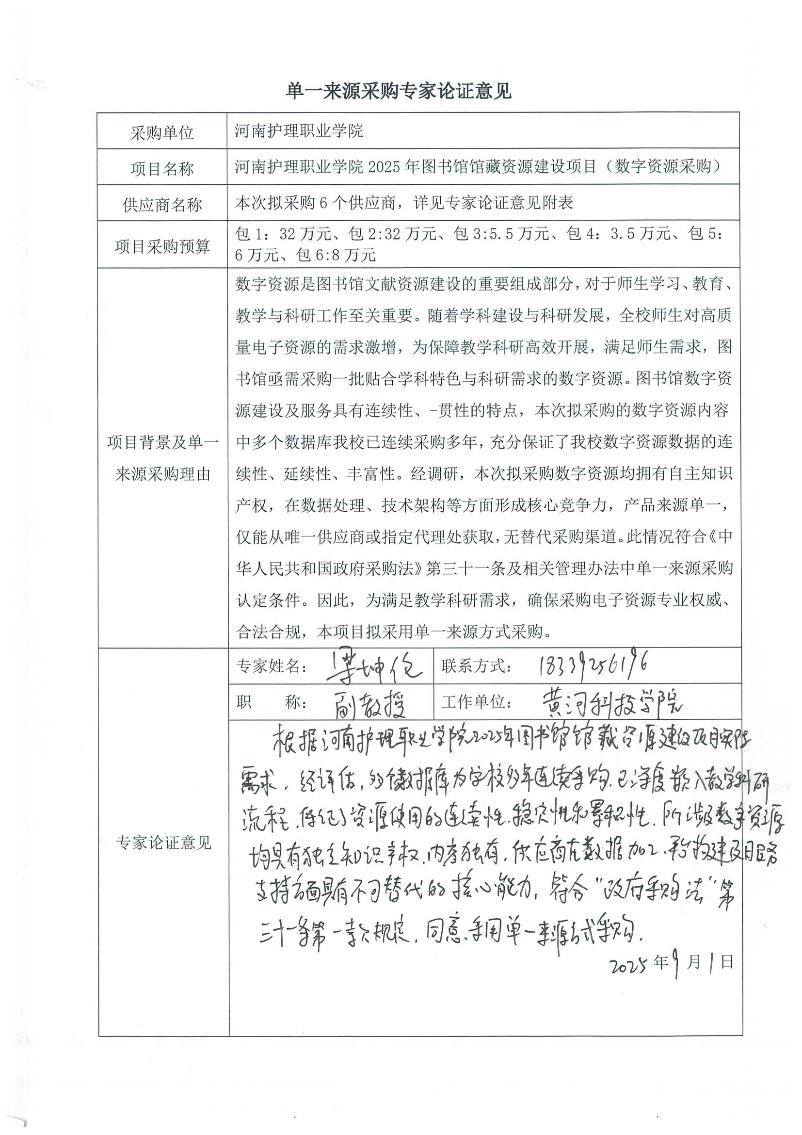 河南护理职业学院2025年图书馆馆藏资源建设项目(数字资源采购)-单一来源采购公示
