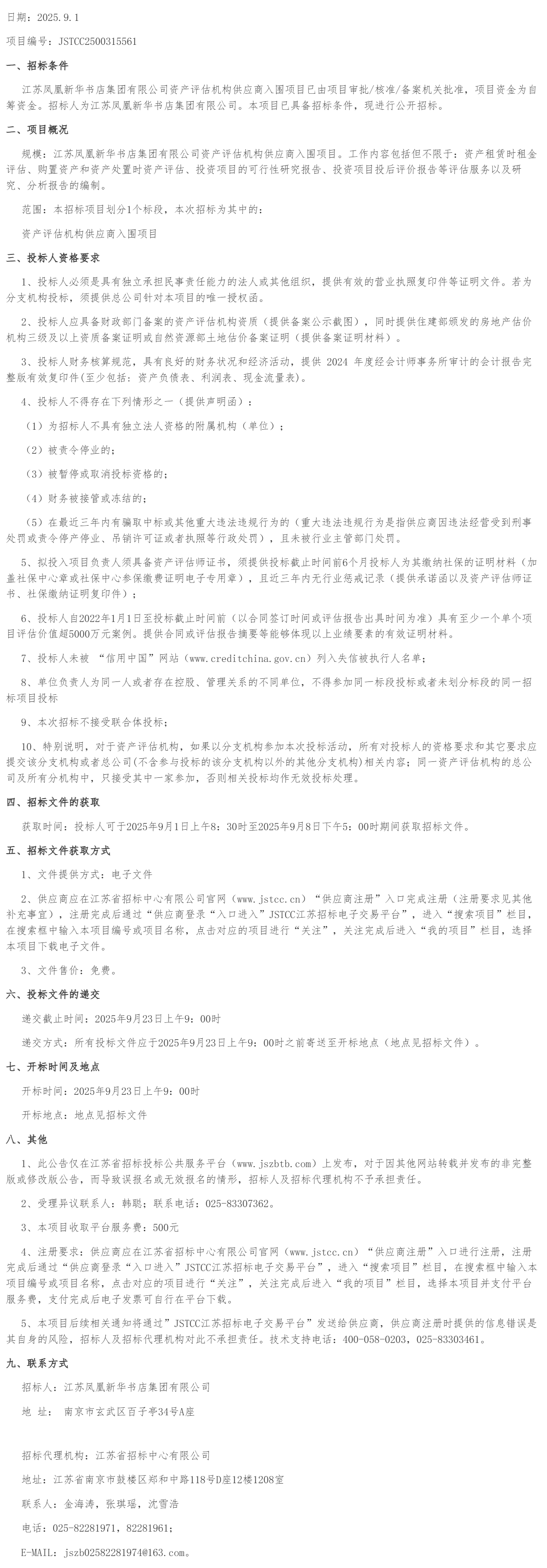 江苏凤凰新华书店集团有限公司资产评估机构供应商入围项目招标公告