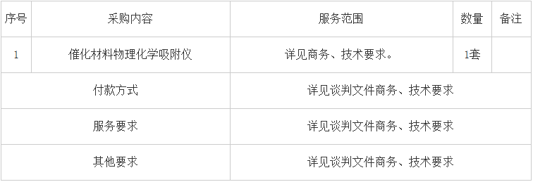 交货期:自收到预付款后*个月内向采购人提供符合本技术规范要求的催化材料物理化学吸附仪,并完成相关设备安装调试工作。