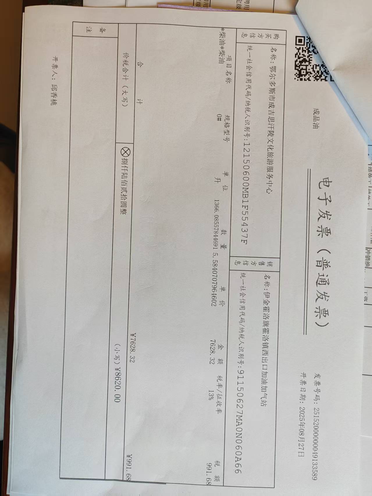 鄂尔多斯市成吉思汗陵文化旅游服务中心燃料费20250827政府采购合同公告