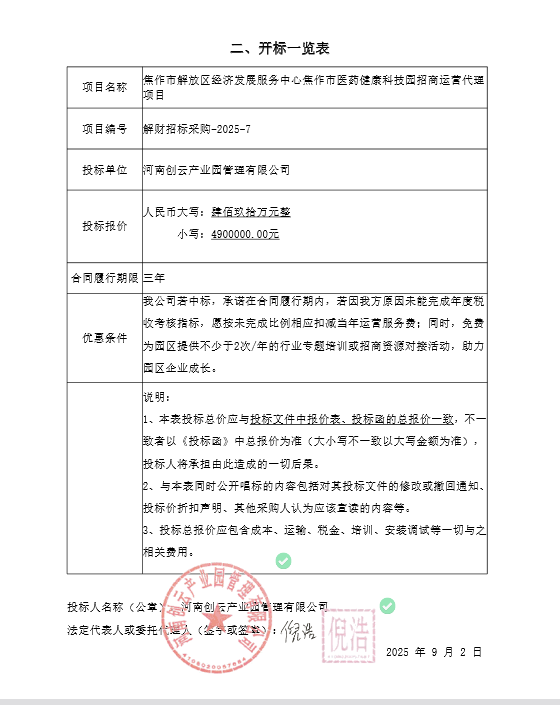 焦作市解放区经济发展服务中心焦作市医药健康科技园招商运营代理项目-中标公告