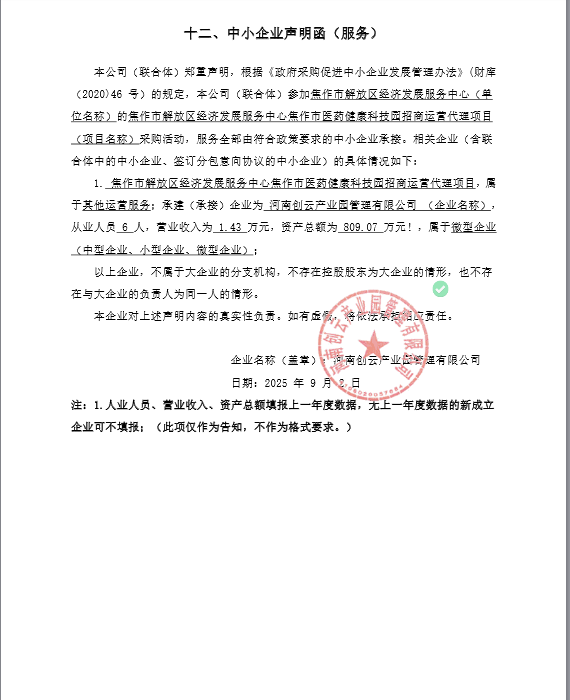 焦作市解放区经济发展服务中心焦作市医药健康科技园招商运营代理项目*中标公告