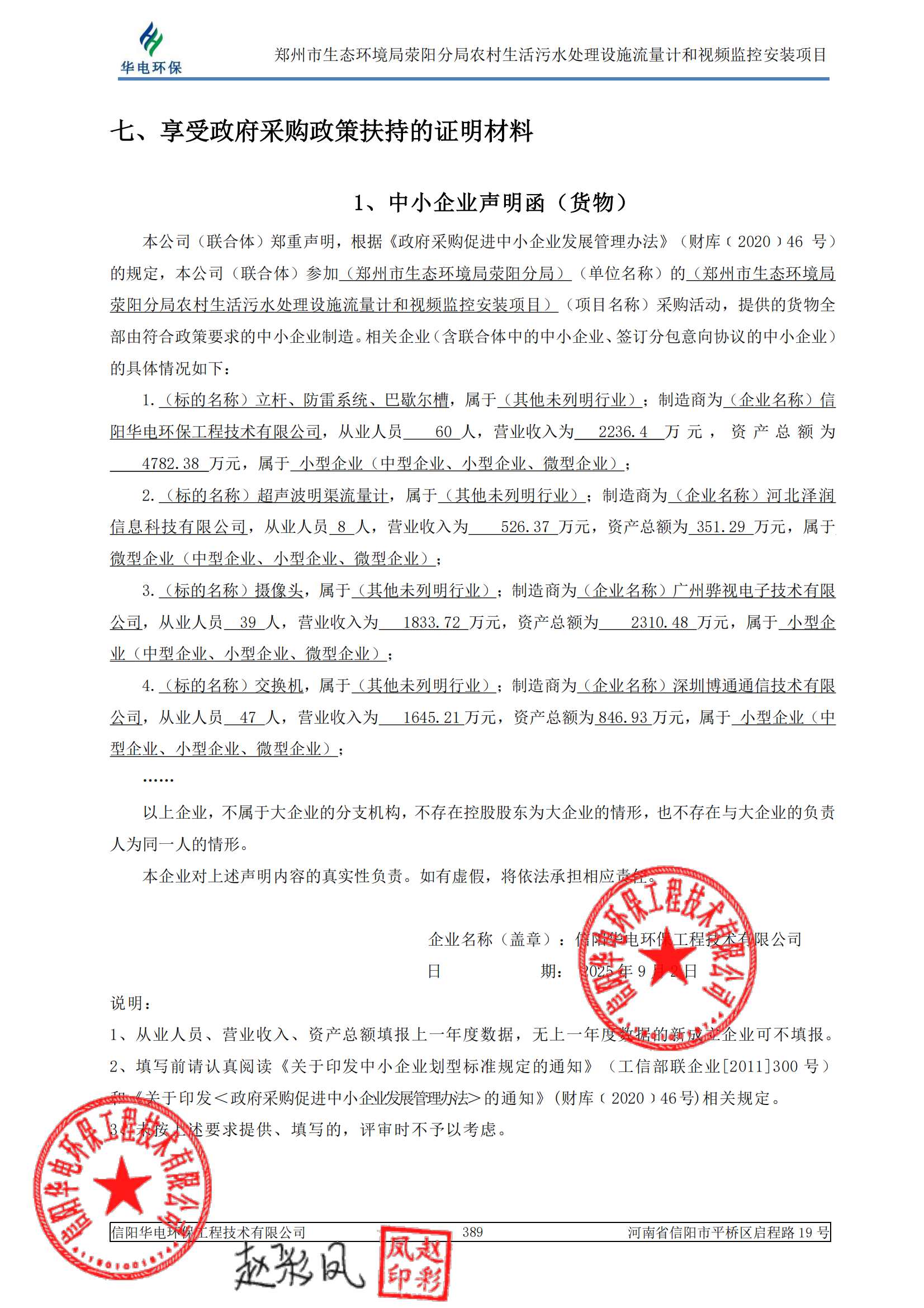 | *、采购项目名称:郑州市生态环境局荥阳分局农村生活污水处理设施流量计和视频监控安装项目 | |||||||||||||||||||||||||||||||
