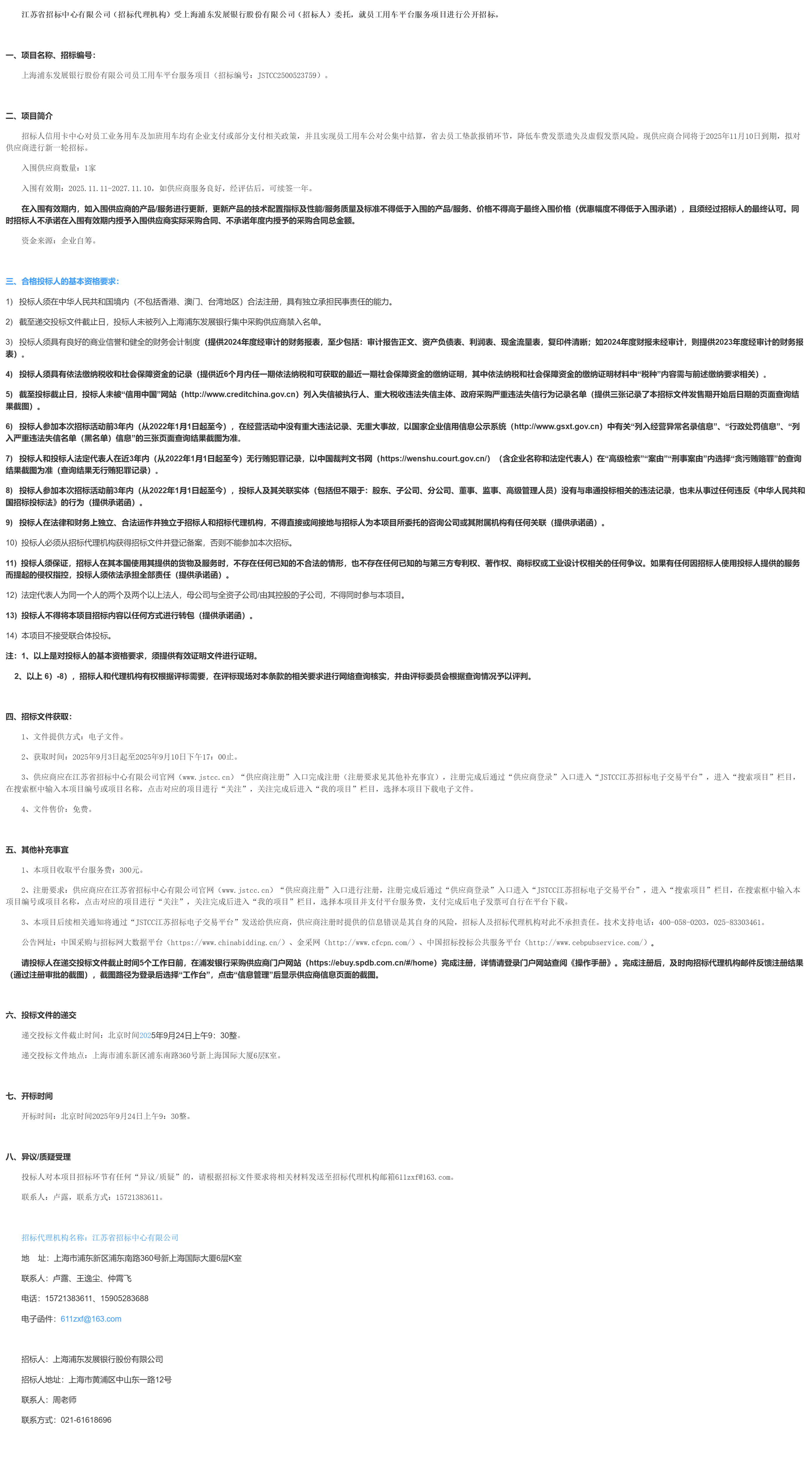 江苏省招标中心有限公司(招标代理机构)受上海浦东发展银行股份有限公司(招标人)委托,就员工用车平台服务项目进行公开招标。