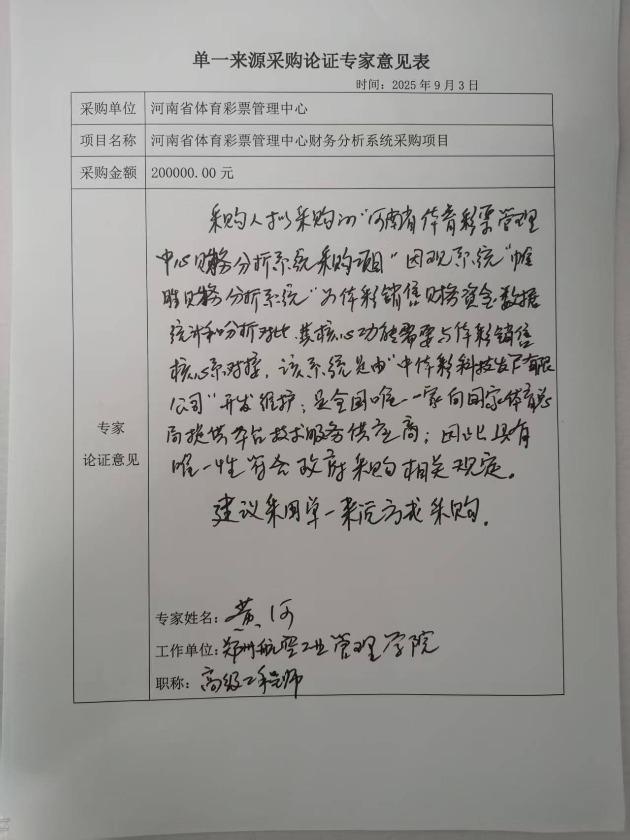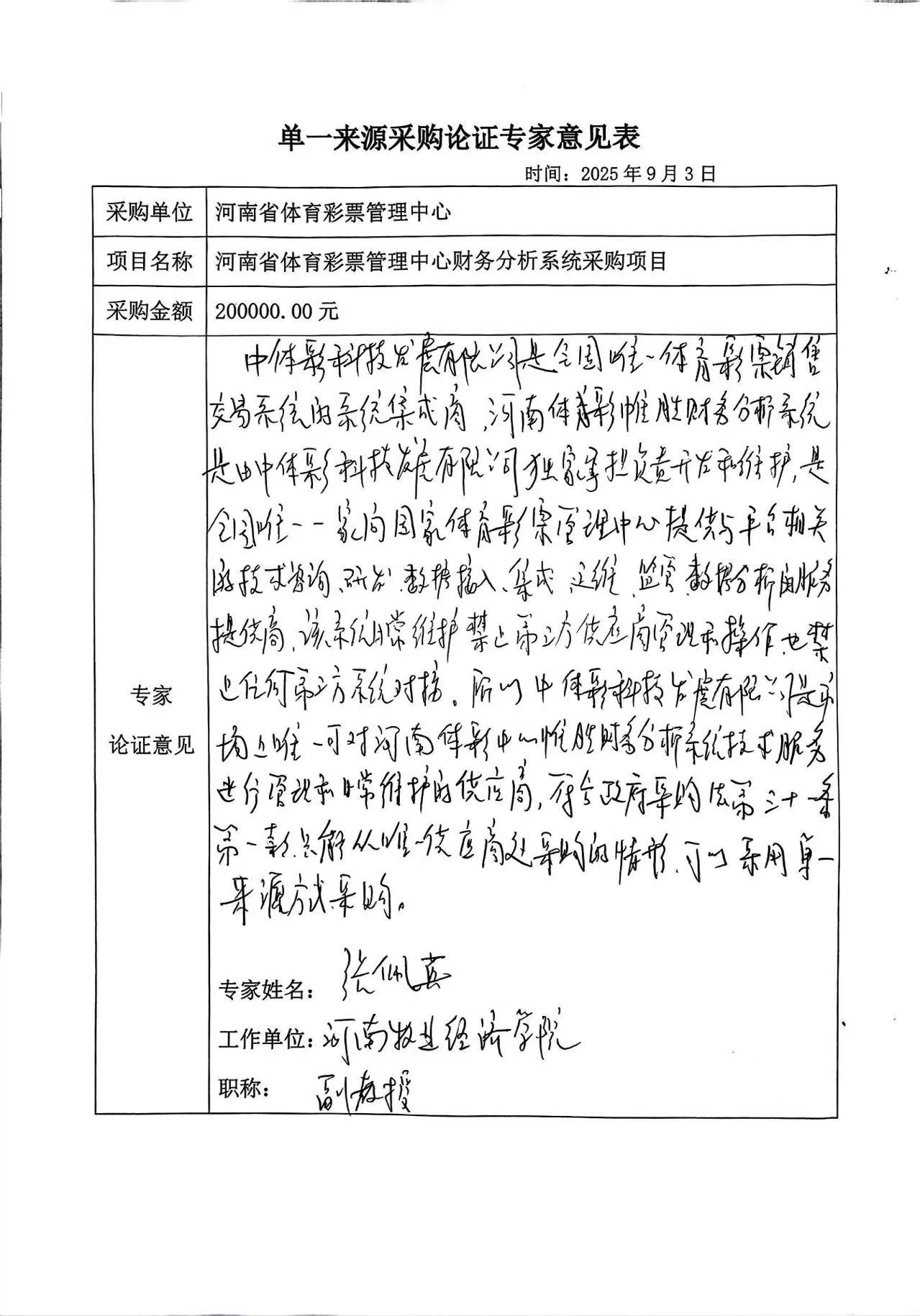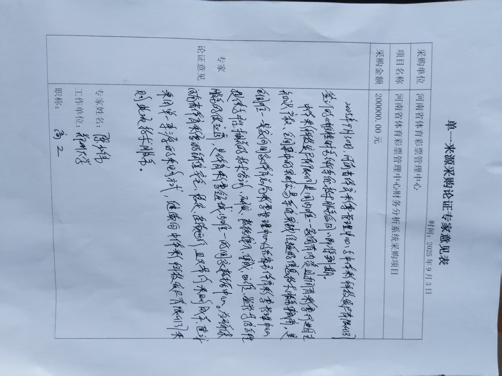 河南省体育彩票管理中心财务分析系统采购项目单一来源采购公示