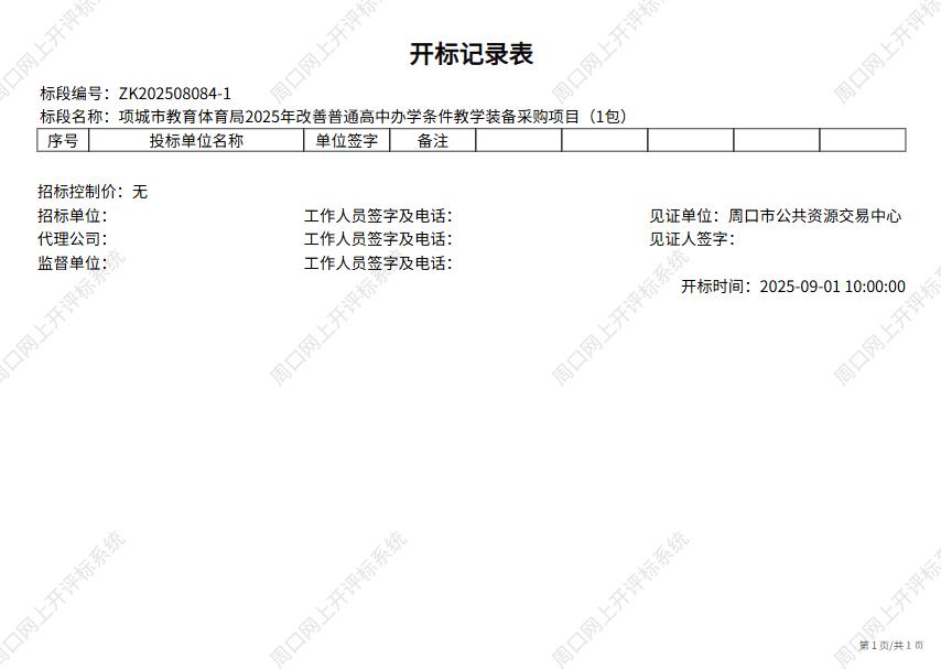项城市教育体育局2025年改善普通高中办学条件教学装备采购项目-废标(终止)公告