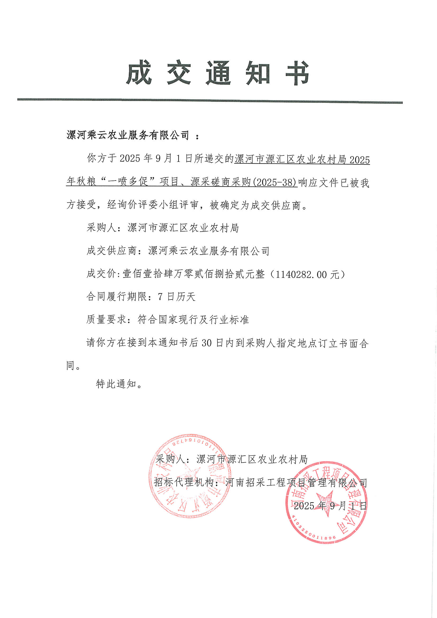 | *.供应商(乙方):漯河乘云农业服务有限公司 | ||||||||||||