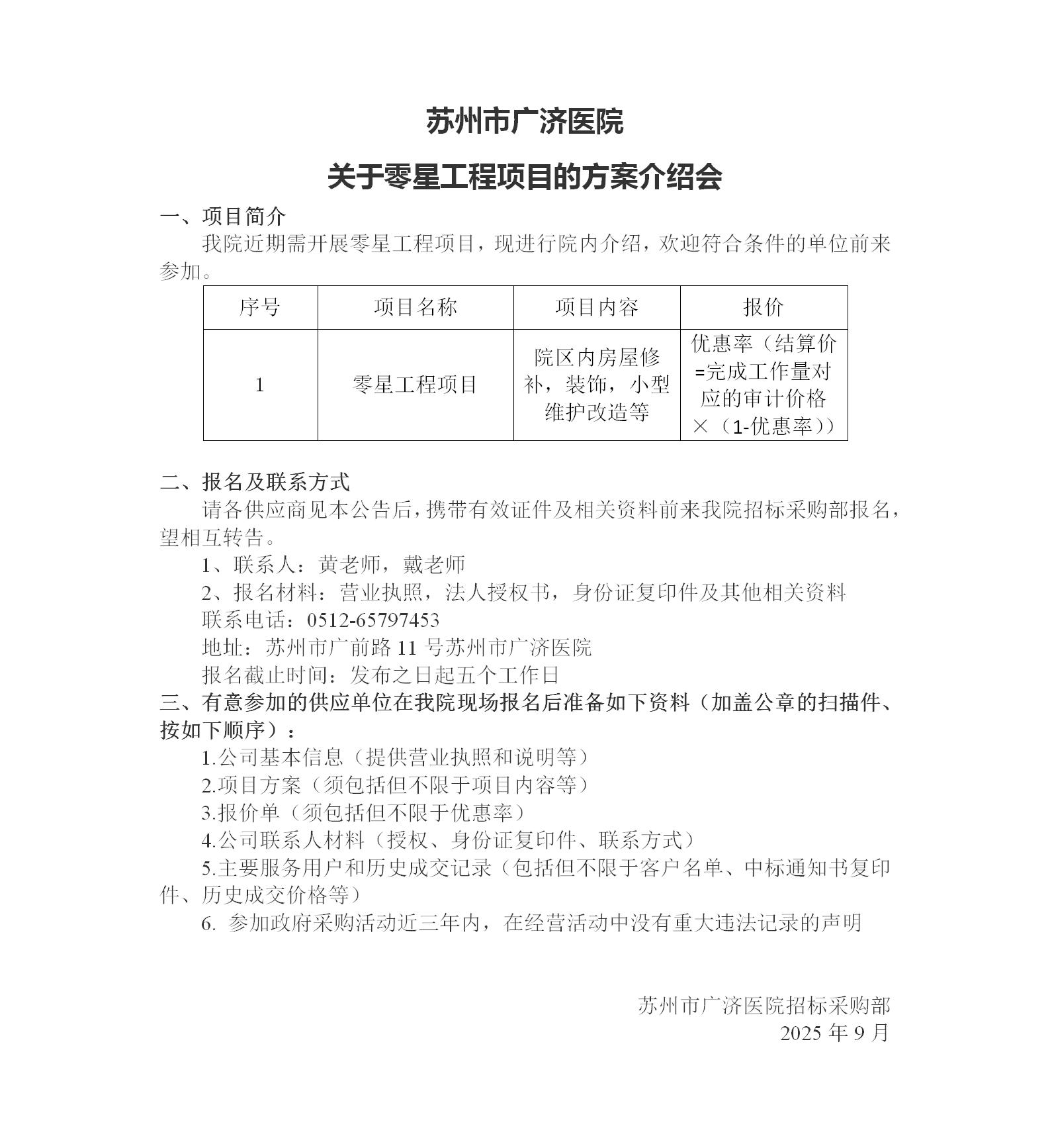 苏州市广济医院关于零星工程项目的方案论证会公告