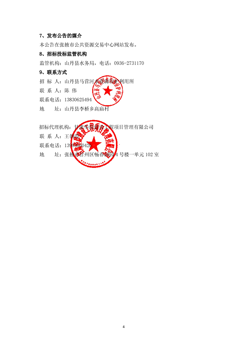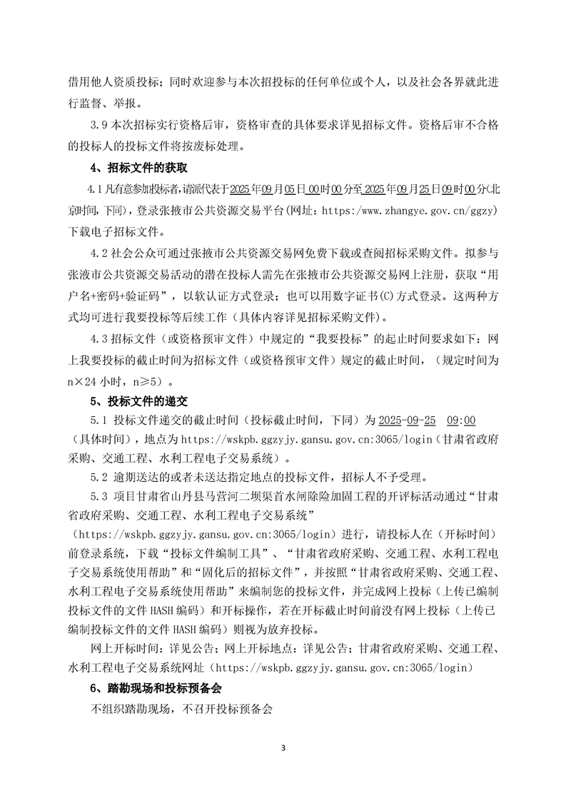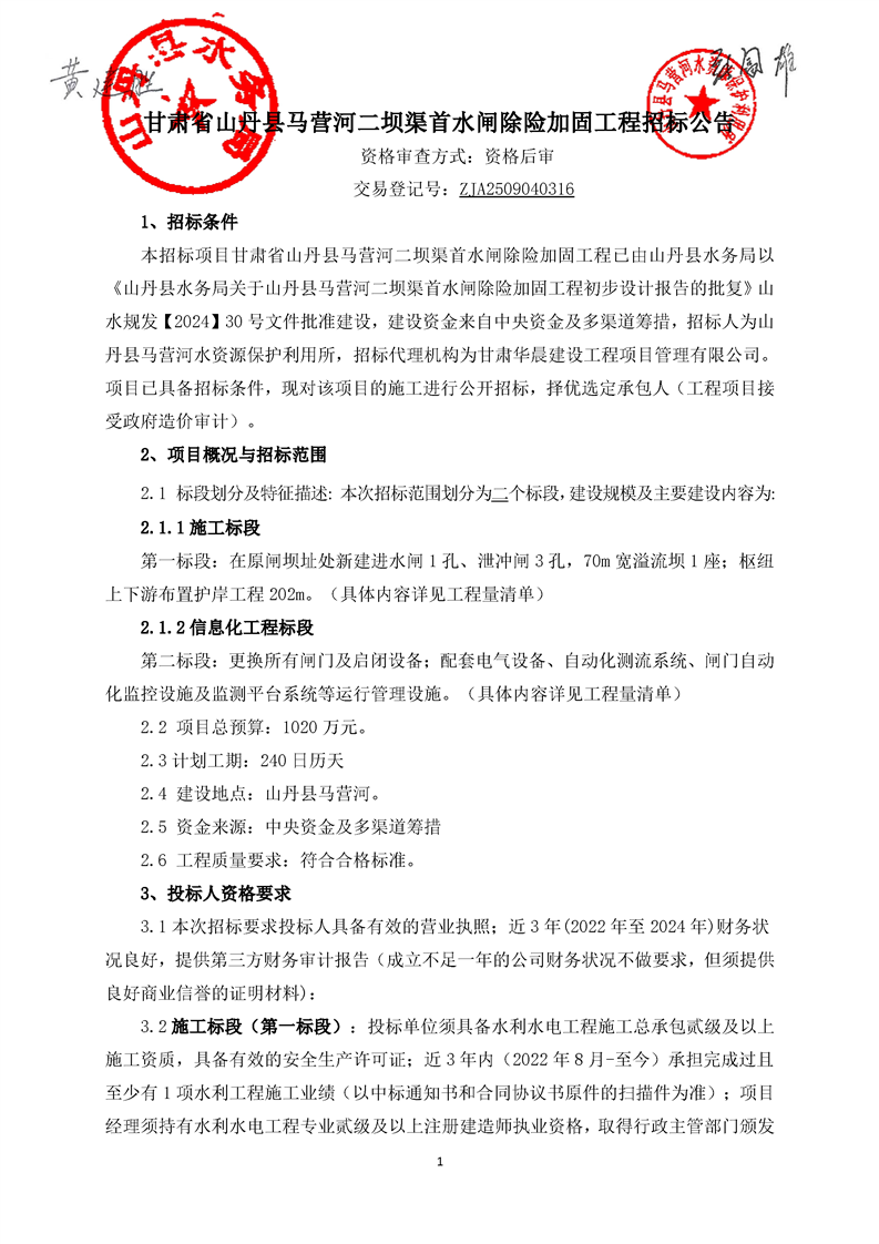 甘肃省山丹县马营河二坝渠首水闸除险加固工程招标公告招标/资审公告