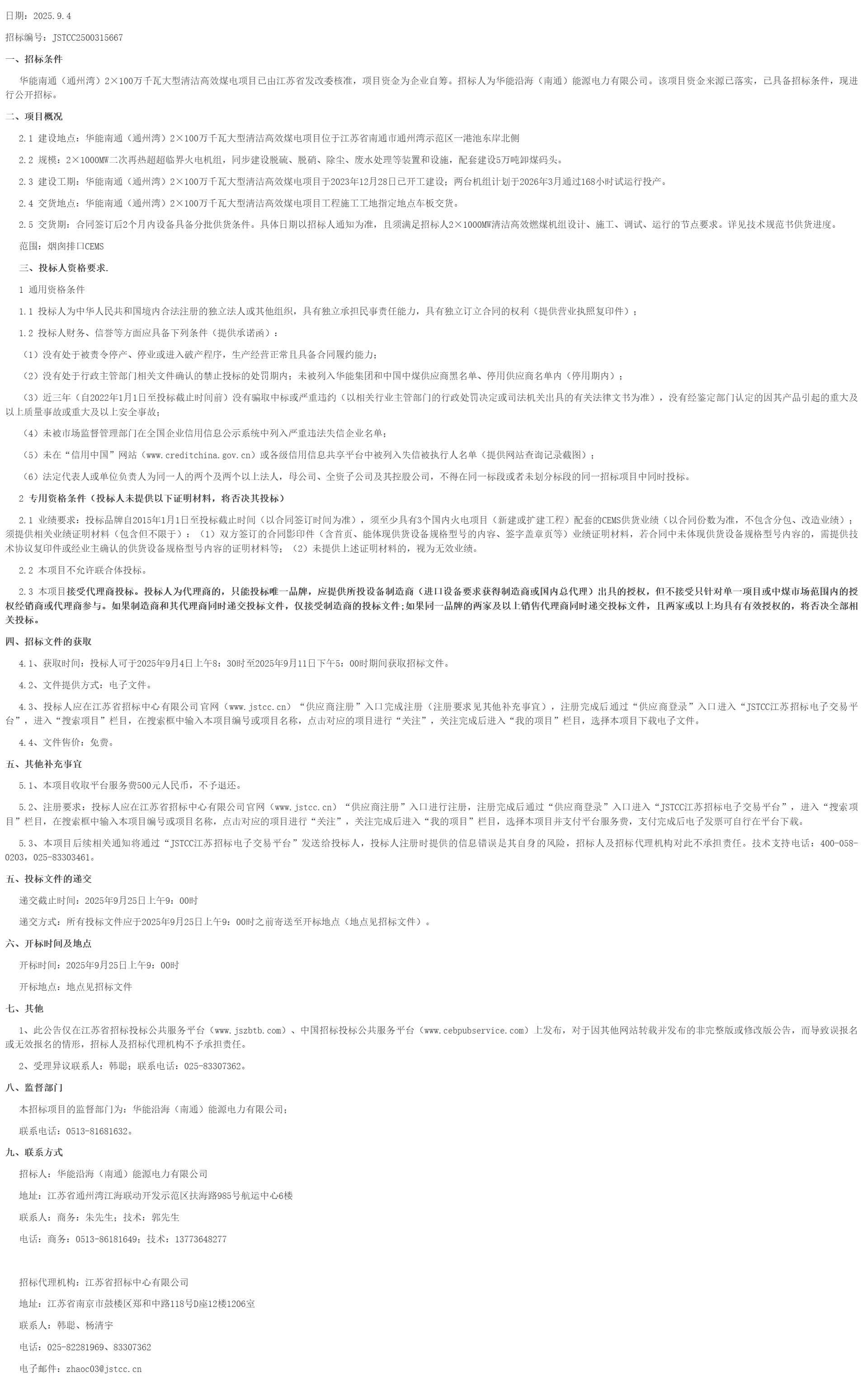 华能南通(通州湾)*×***万千瓦大型清洁高效煤电项目烟囱排口****招标公告(***************)