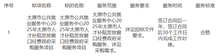太原市公共就业服务中心2025年太原市人才补贴发放窗口经费政府采购服务项目结果公告