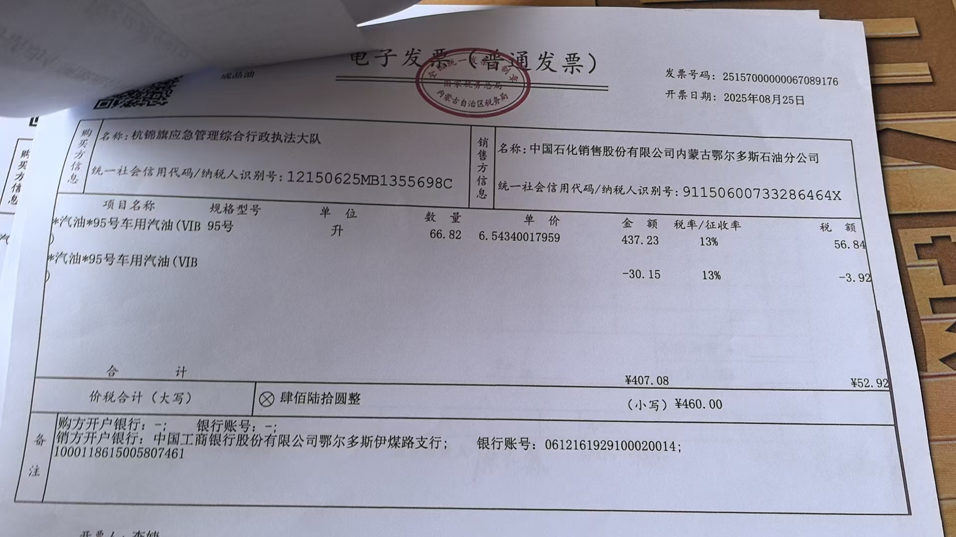杭锦旗应急管理综合行政执法大队车辆加油政府采购合同公告