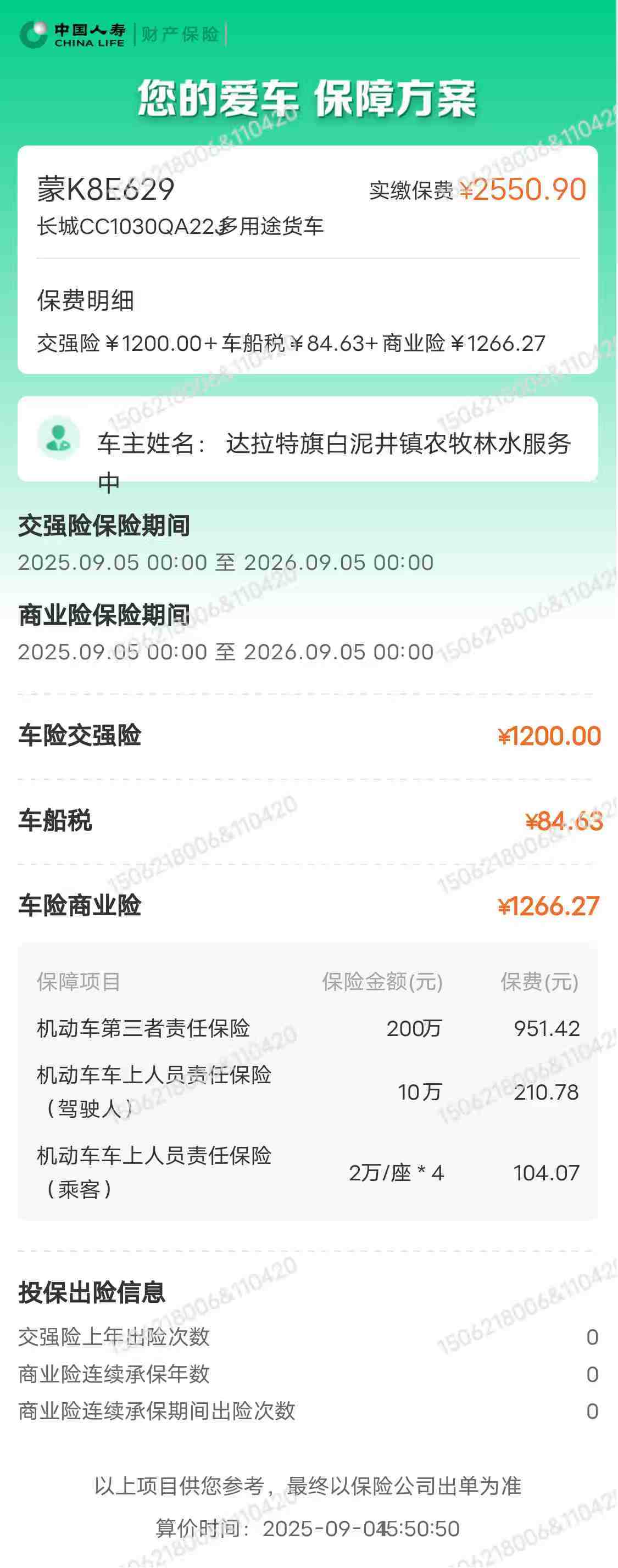 一、合同编号:****二、合同名称:林草皮卡保险三、项目编号:鄂财购备字(电子)[****]*******号四、项目名称:林草皮卡保险五、合同主体采购人(甲方):白泥井镇人民政府 地址:鄂尔多斯市达拉特旗 联系方式:************ 供应商(乙方):中国人寿财产保险股份有限公司鄂尔多斯市中心支公司 地址:内蒙古自治区鄂尔多斯市东胜区内蒙古自治区鄂尔多斯市东胜区天骄街道鄂托克西街北迎宾路东鑫隆综合商务楼**楼西北侧 **楼整层 联系方式:*********** 六、合同主要信息主要标的: