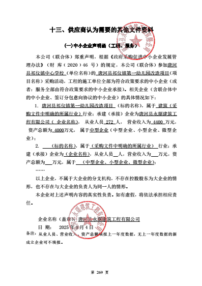 | *、采购项目名称:唐河县祁仪镇第一幼儿园改造项目 | |||||||||||||||||||||||||||||||