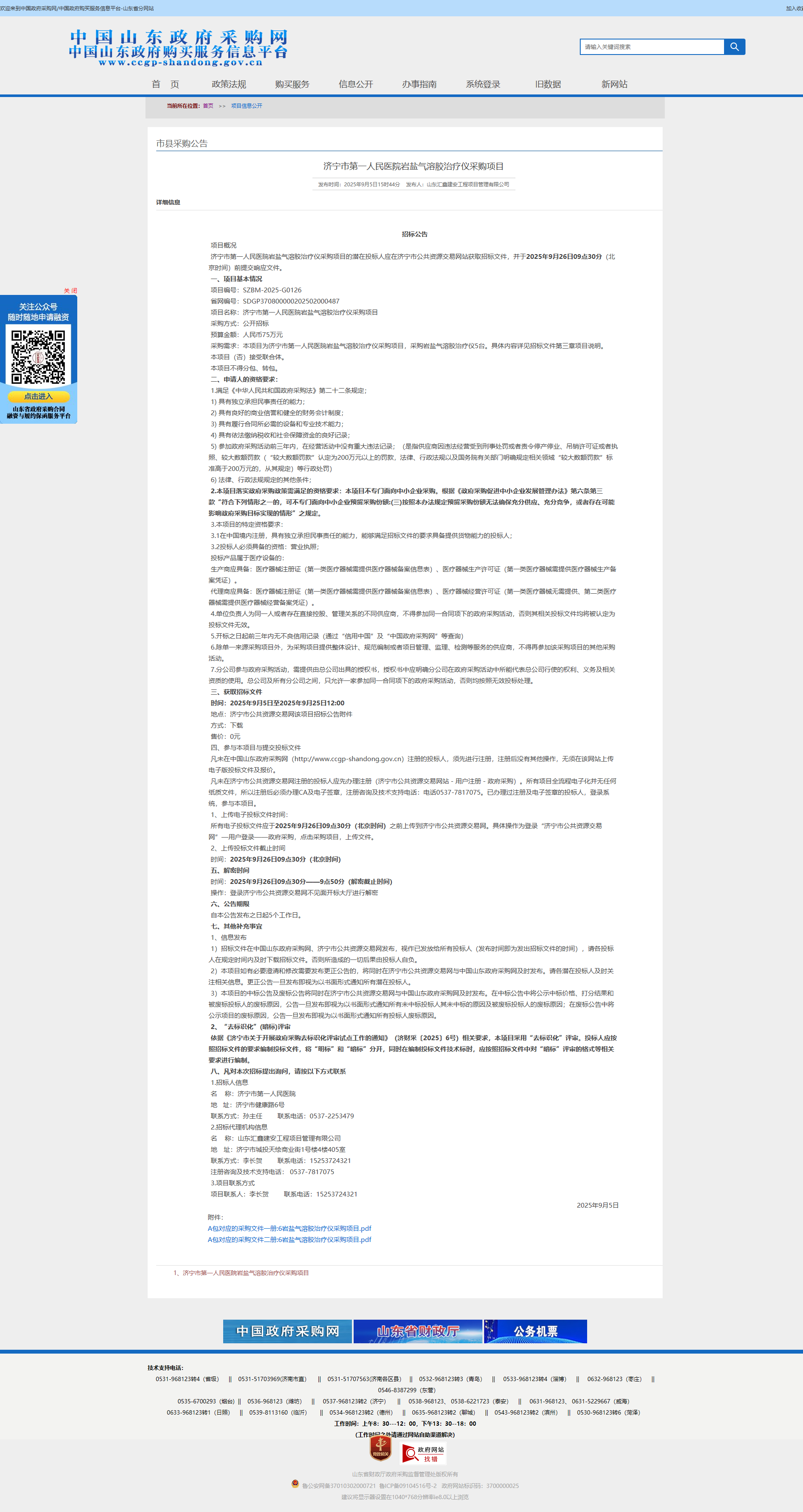 济宁市第一人民医院岩盐气溶胶治疗仪采购项目招标公告