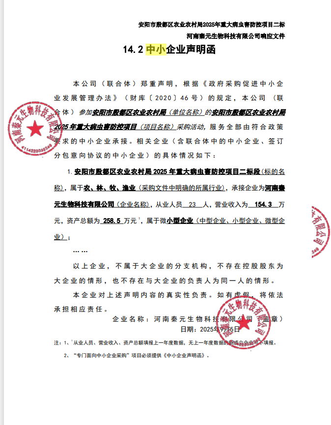 安阳市殷都区农业农村局殷都区2025年重大病虫害防控项目-成交公告