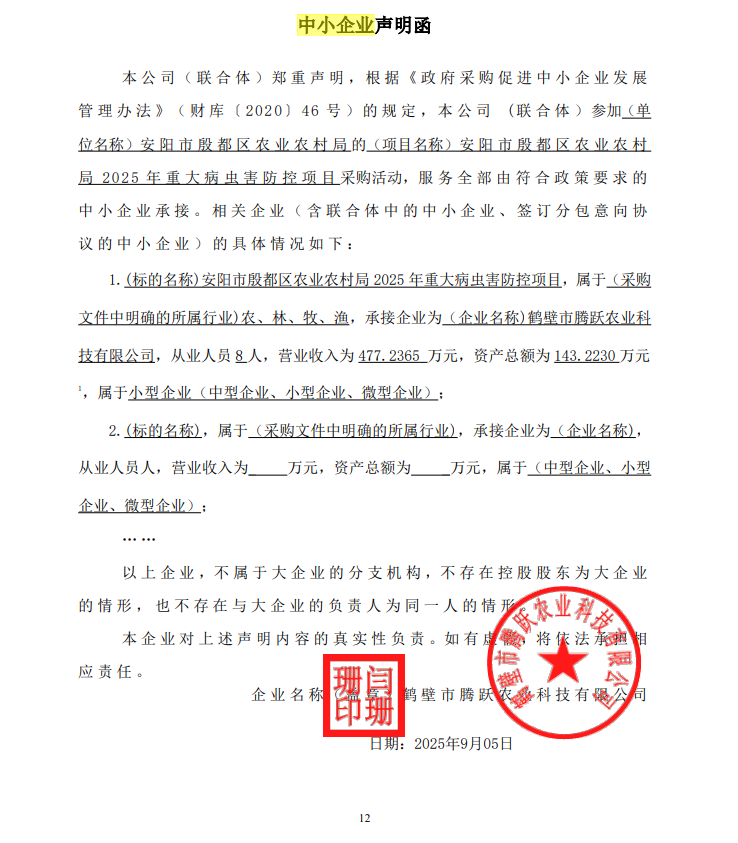 安阳市殷都区农业农村局殷都区2025年重大病虫害防控项目-成交公告