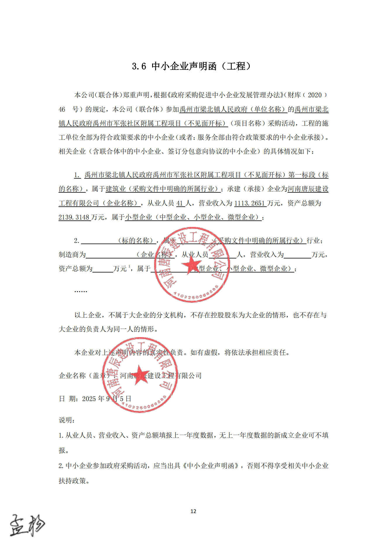 | *、采购项目名称:禹州市梁北镇人民政府禹州市军张社区附属工程项目 | |||||||||||||||||||||||||||||||