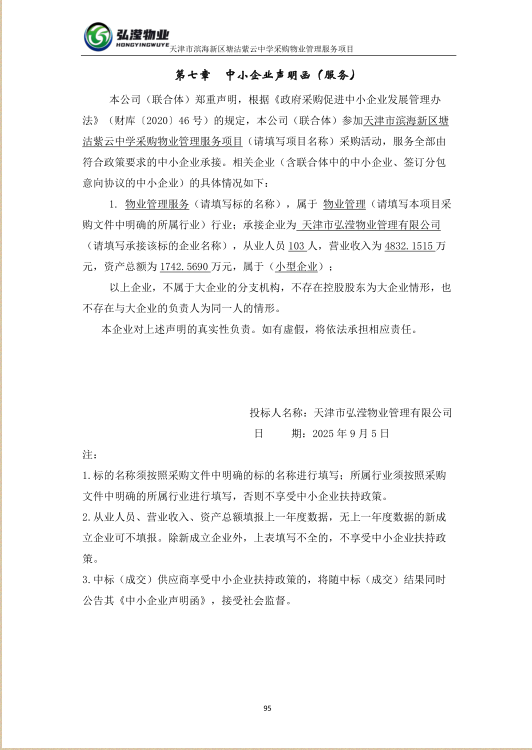 天津市滨海新区塘沽紫云中学采购物业管理服务项目(项目编号:TJBH-...