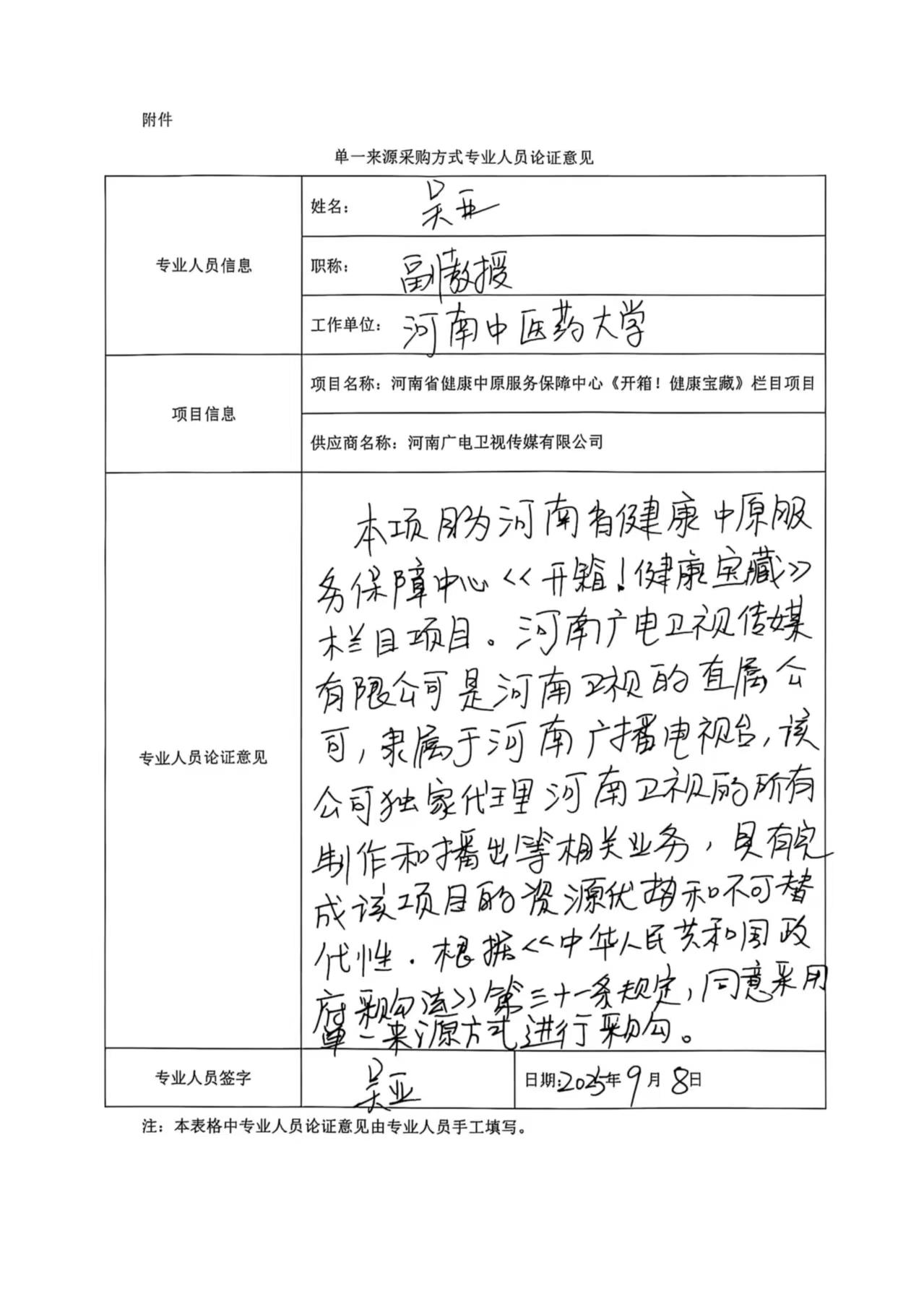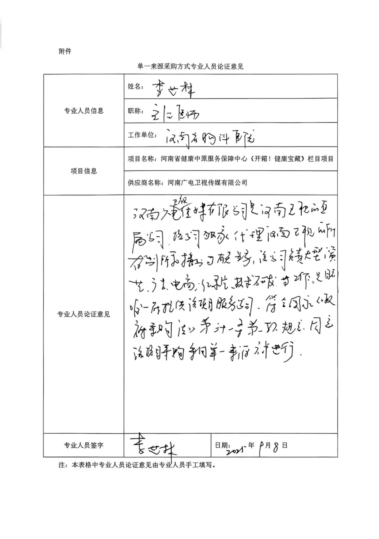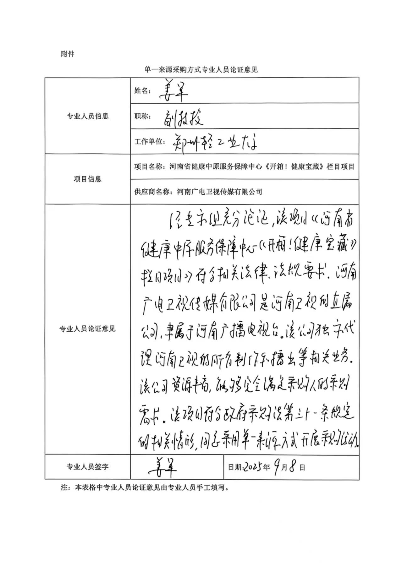 河南省健康中原服务保障中心《开箱!健康宝藏》栏目项目 单一来源采购公示