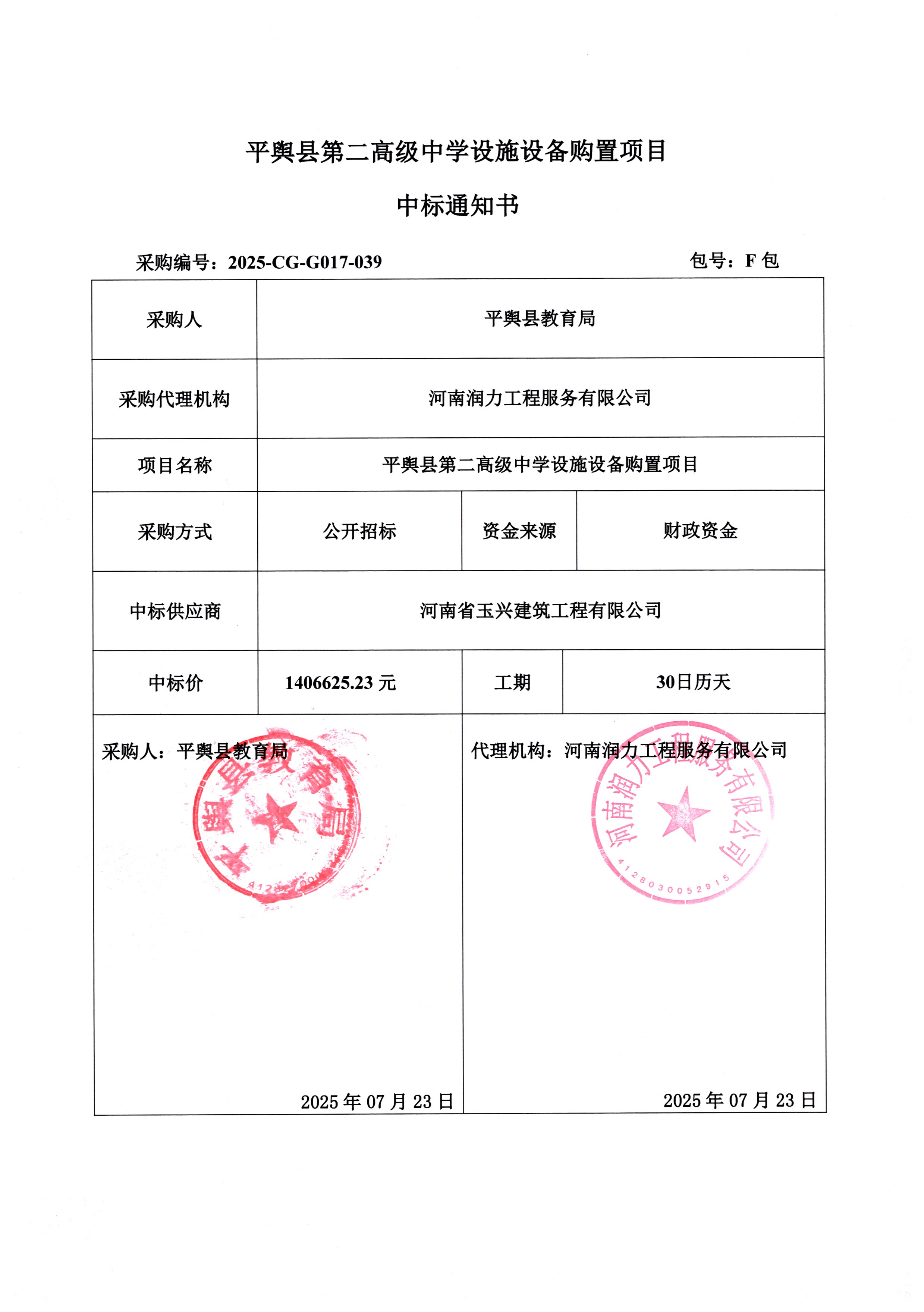 | 二、合同名称:平舆县第二高级中学设施设备购置项目*包 | ||||||||||||