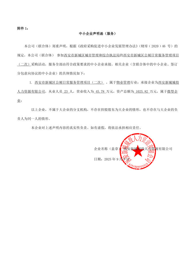 二、项目名称:西安市新城区公厕日常服务管理项目(二次)