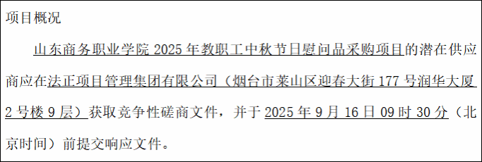 *.项目名称:山东商务职业学院****年教职工中秋节日慰问品采购项目