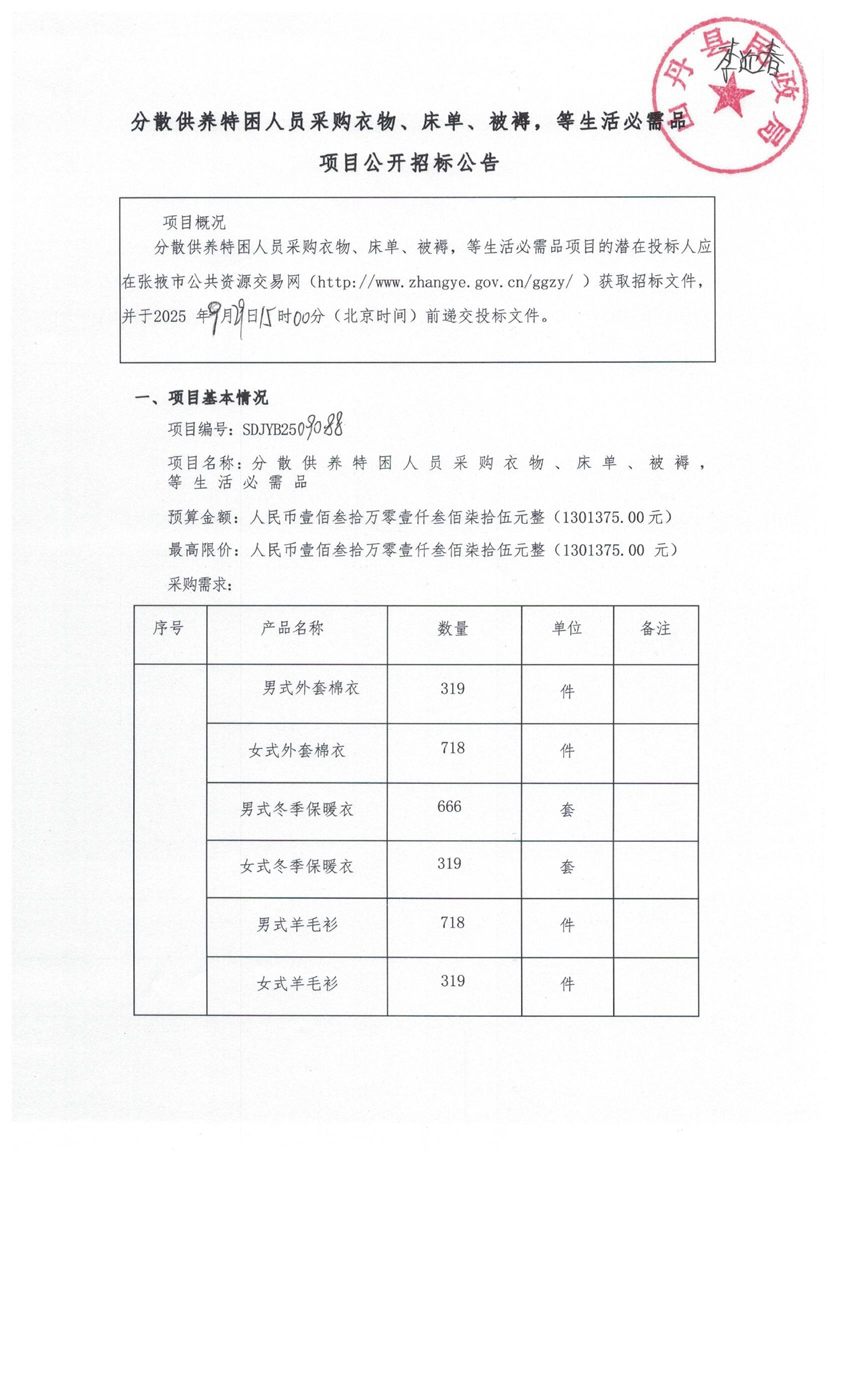 分散供养特困人员采购衣物、床单、被褥,等生活必需品项目更正公告{type}