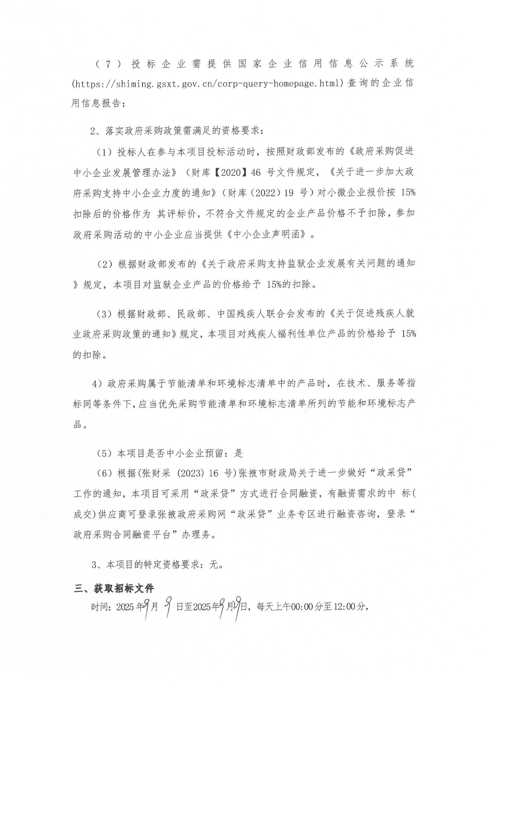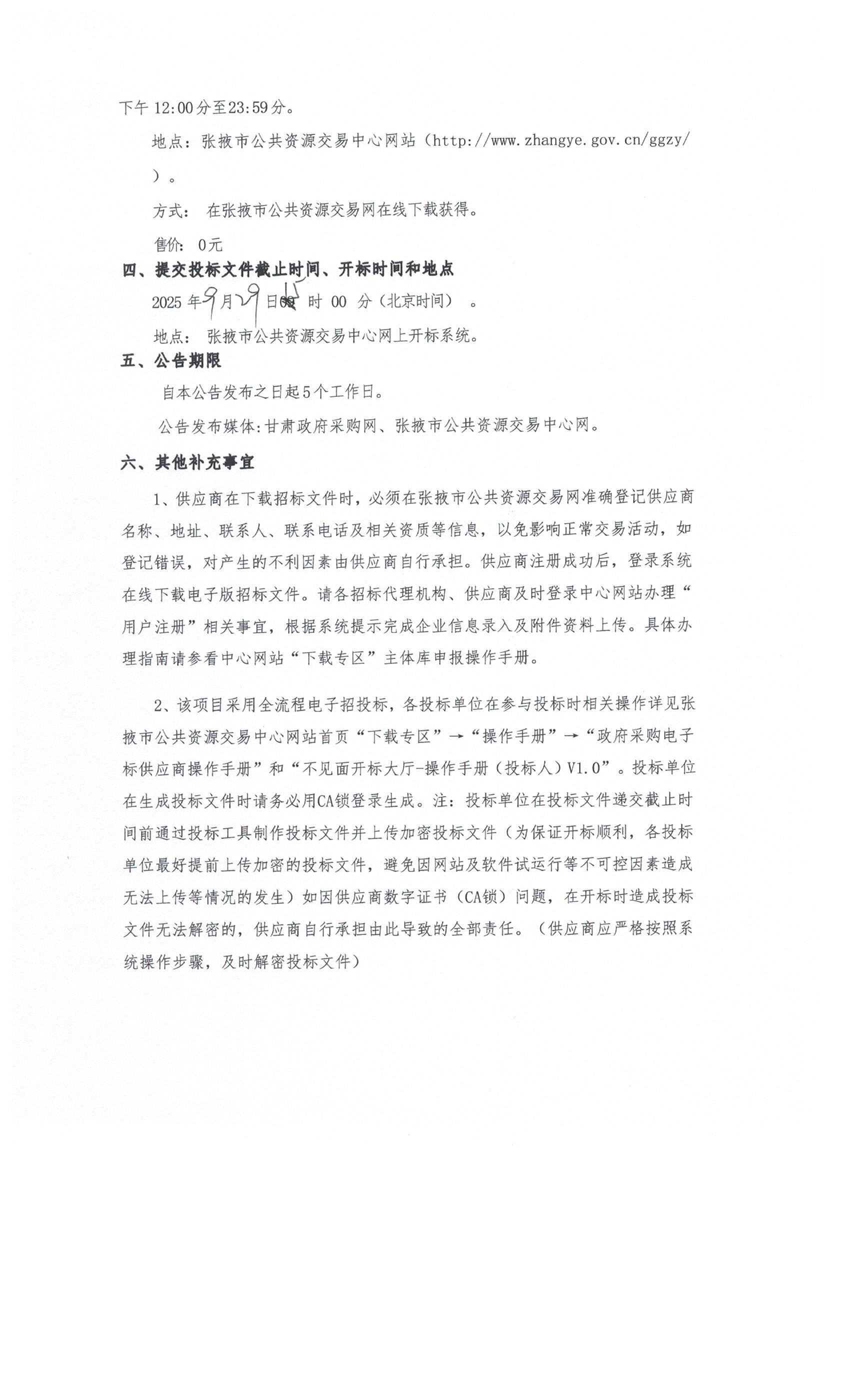 交易平台:张掖市公共资源交易中心招标/采购项目编号:********************投标登记截止时间:********** **:**:**