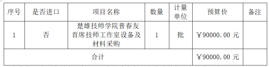 楚雄技师学院普春友首席技师工作室设备及材料采购 询价公告