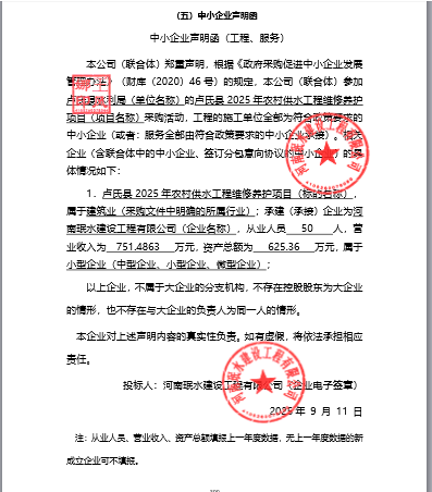卢氏县2025年农村供水工程维修养护项目-成交公告