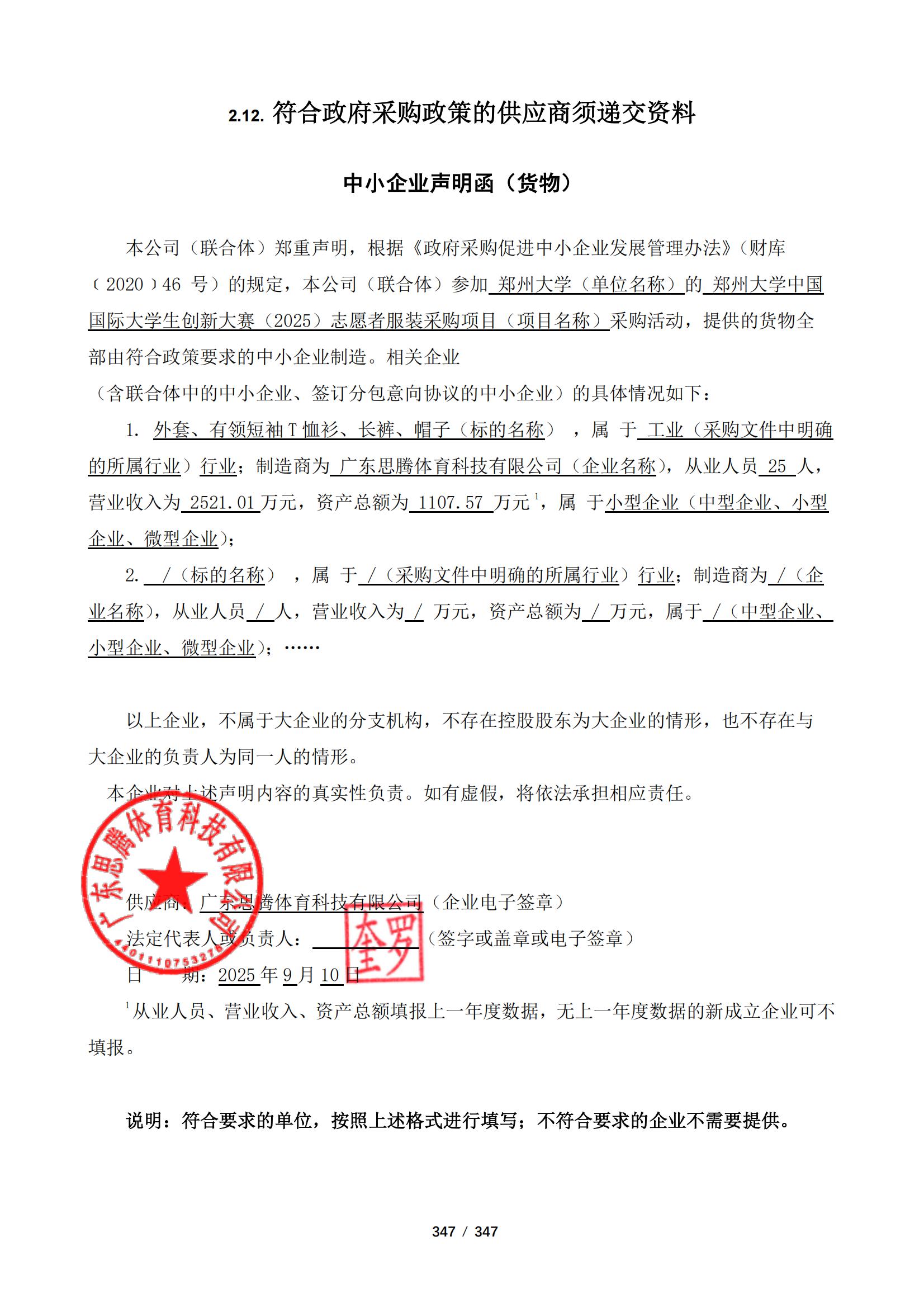 郑州大学中国国际大学生创新大赛(2025)志愿者服装采购项目-中标公告