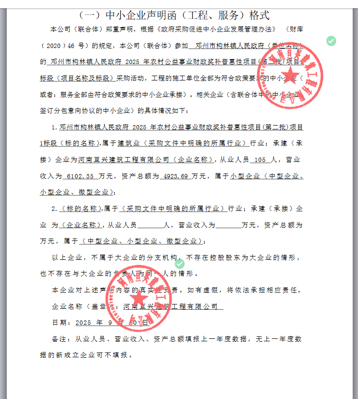 邓州市构林镇人民政府2025年农村公益事业财政奖补普惠性项目(第二批)项目-成交公告