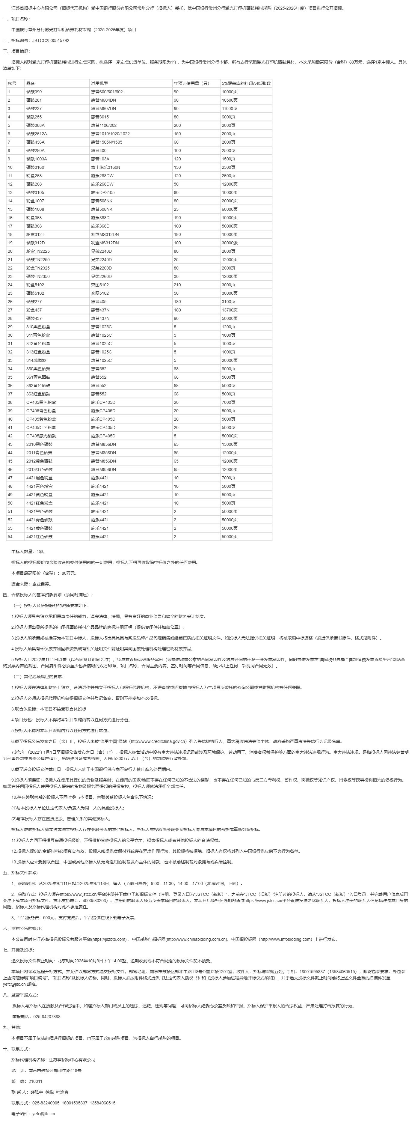 江苏省招标中心有限公司(招标代理机构)受中国银行股份有限公司常州分行(招标人)委托,就中国银行常州分行激光打印机硒鼓耗材采购(*********年度)项目进行公开招标。