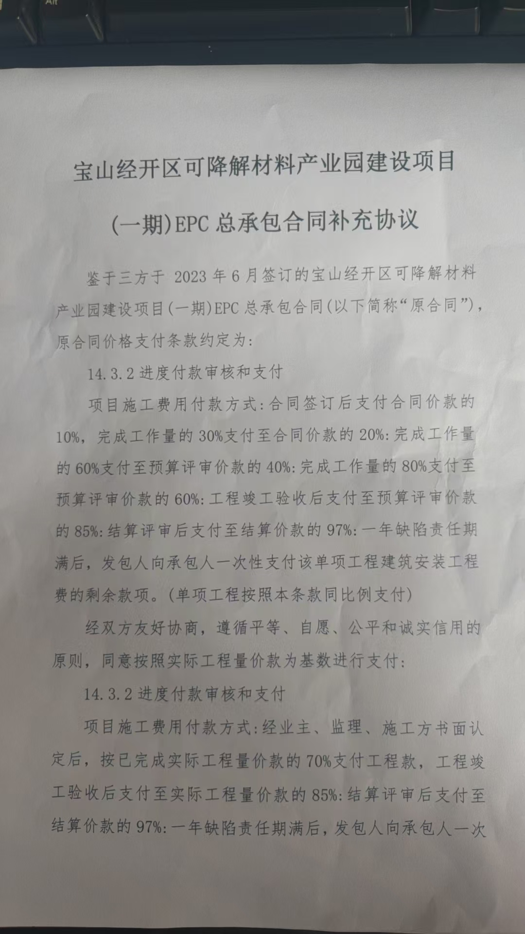 | 合同名称:鹤壁市宝山循环经济产业集聚区管理委员会宝山经开区可降解材料产业园建设项目(一期)工程总承包项目 |