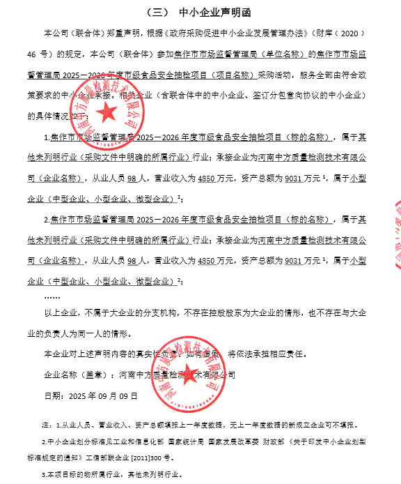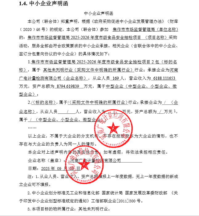 | *包:专项抽检***批次、快检***批次,预算资金**万元。 *包:专项抽检***批次、快检***批次;预算资金**万元。 *包:计划***批次,预算资金:**万元;抽检区域:修武、山阳、示范区、马村。 *包:计划***批次,预算资金:**万元;抽检区域:武陟、温县、孟州。 *包:计划***批次,预算资金:**万元;抽检区域:博爱、沁阳、解放、中站。 质量标准:样品抽样、运输及贮存、检测方法、检测依据的法律法规和国家规定标准、判定原则与结论须符合最新国家食品安全监督抽检实施细则相关规定。 抽检时间(服务期限):***包:覆盖****年三季度至****年三季度(以合同约定为准)。 | |||||||||||||||||||||||||||||||||||||||||||||||||||||||||||||||||||||||||||||||||||||||||||||||||||||||||||||||||||||||||||||||