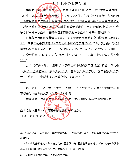 焦作市市场监督管理局2025-2026年度市级食品安全抽检项目-中标公告