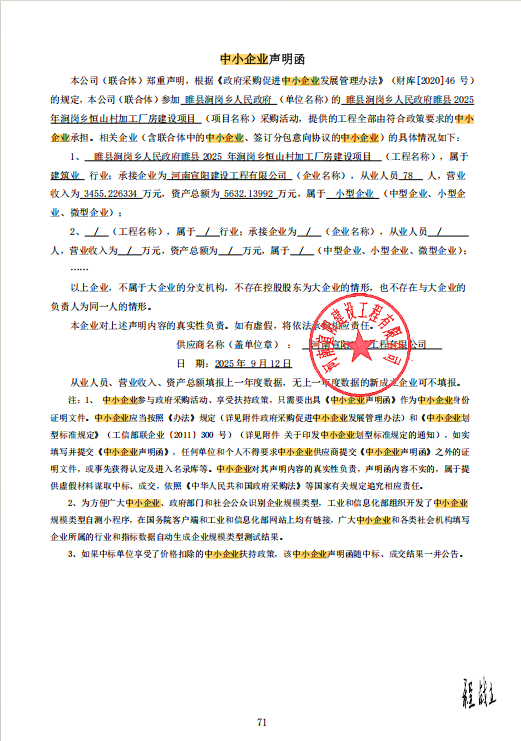 睢县涧岗乡人民政府睢县2025年涧岗乡恒山村加工厂房建设项目-成交公告