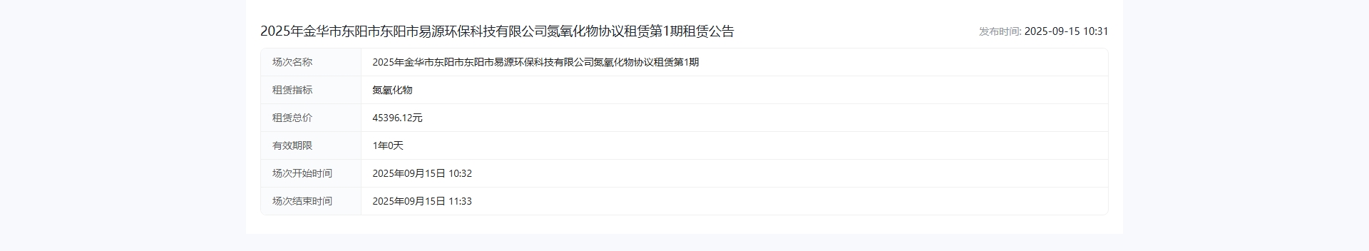 华市东阳市东阳市易源环保科技有限公司氮氧化物协议租赁第*期租赁公告
