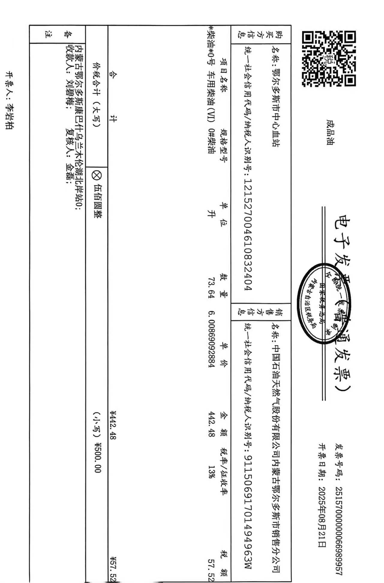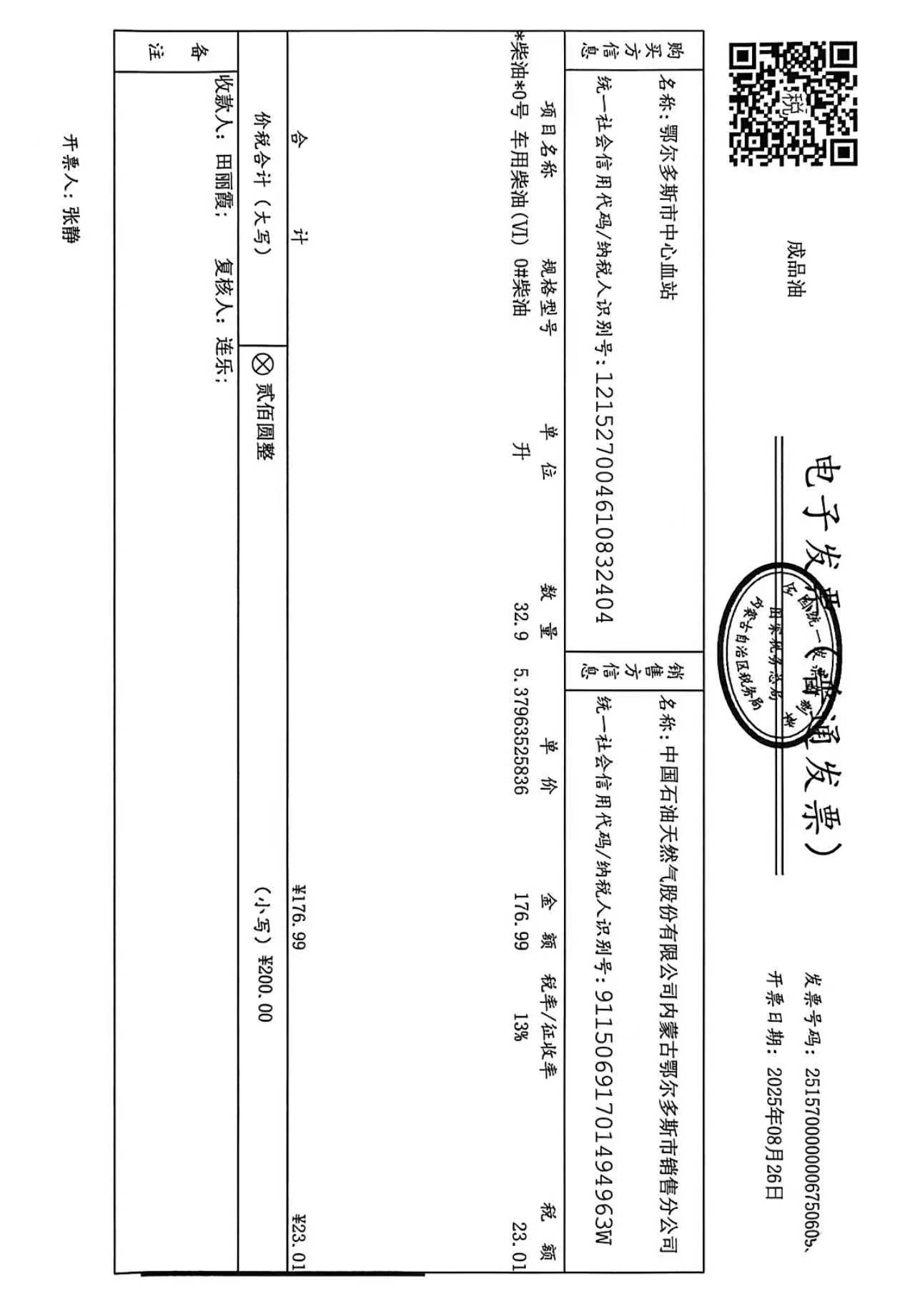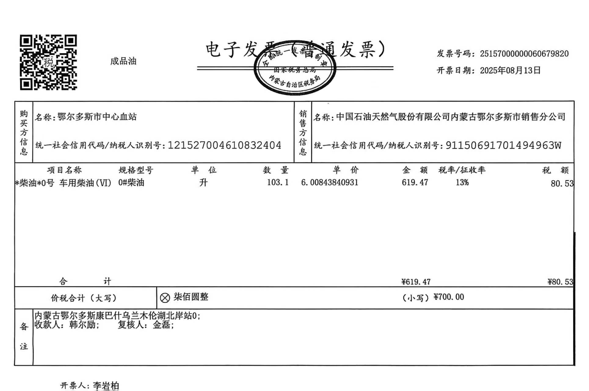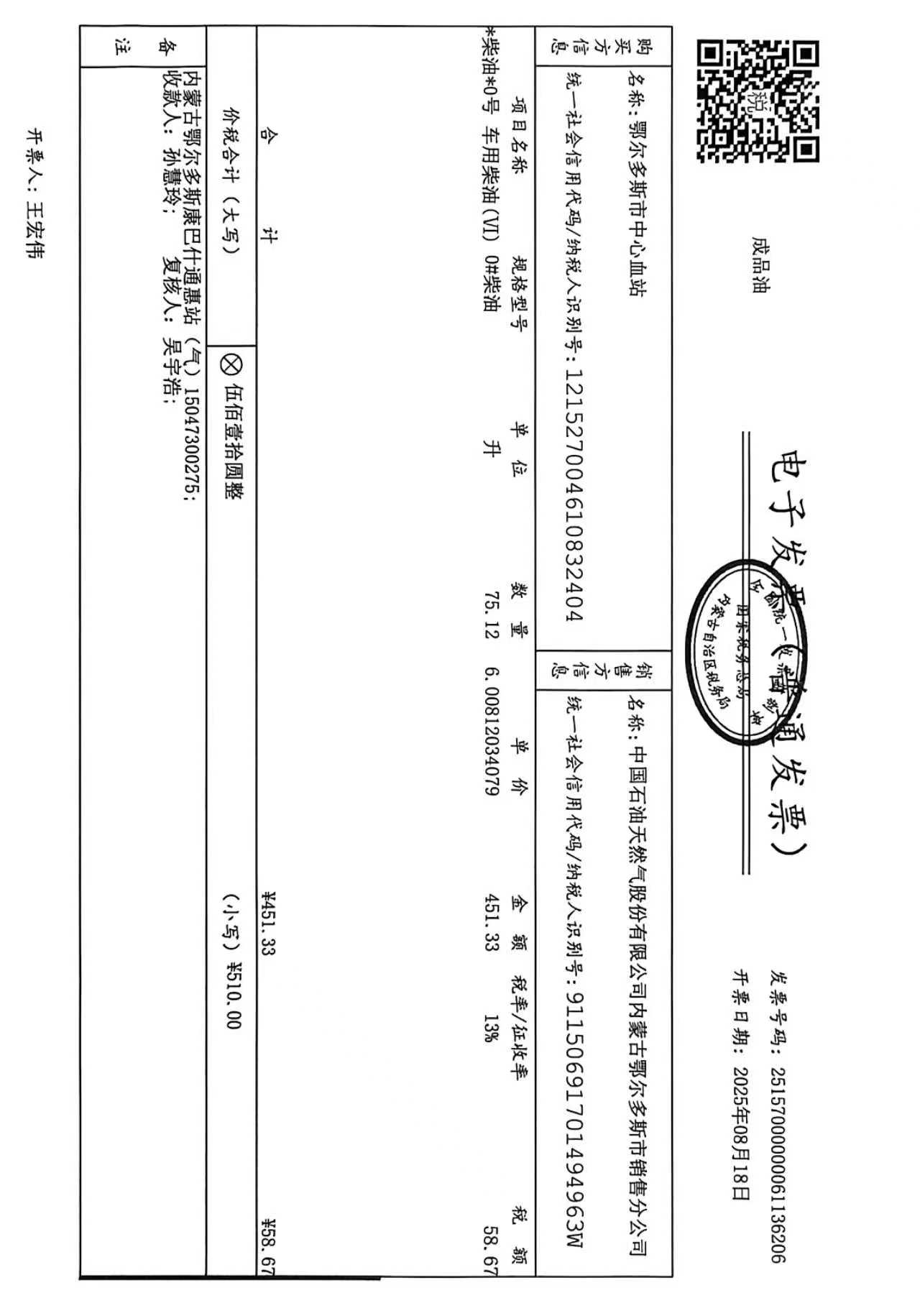 鄂尔多斯市中心血站蒙******车辆八月用油政府采购合同公告