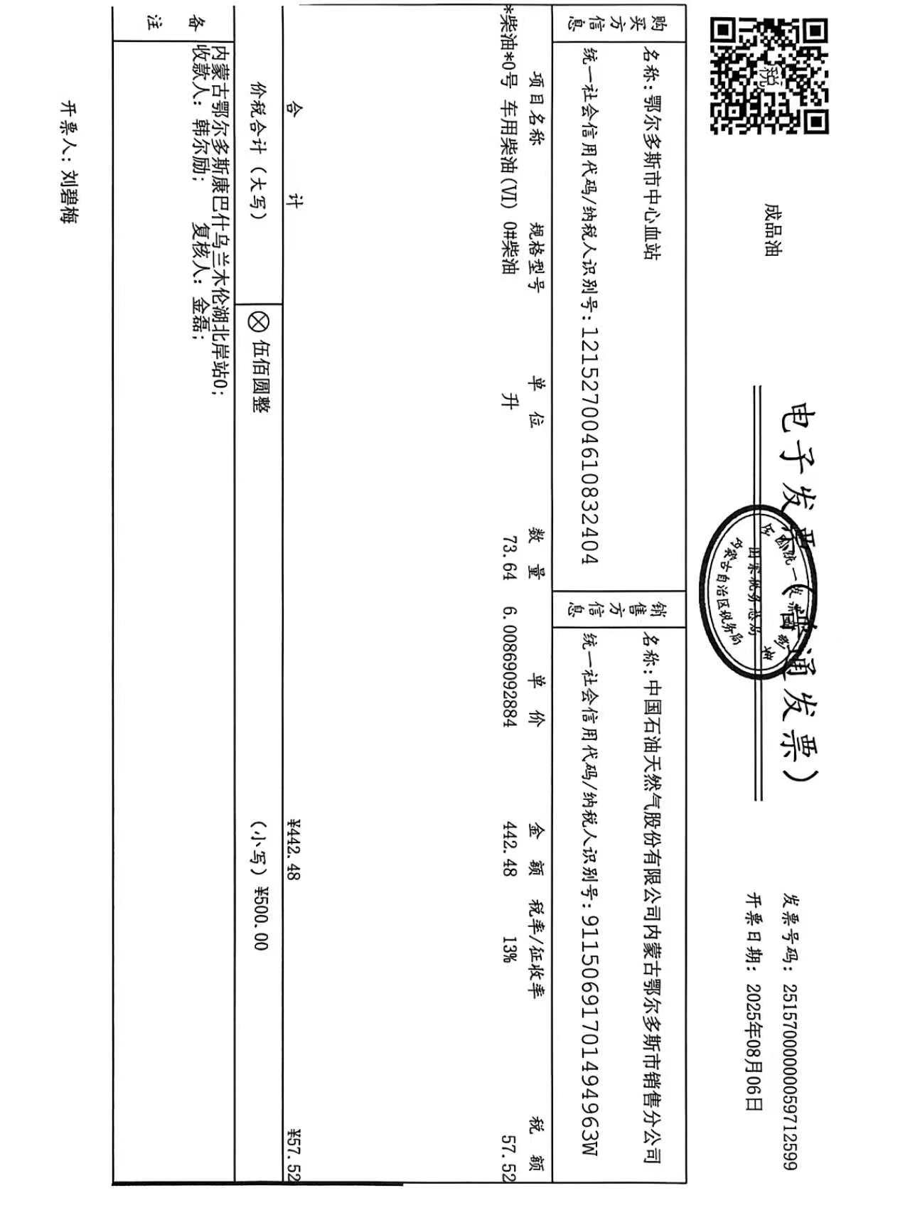 鄂尔多斯市中心血站蒙K90115车辆八月用油政府采购合同公告