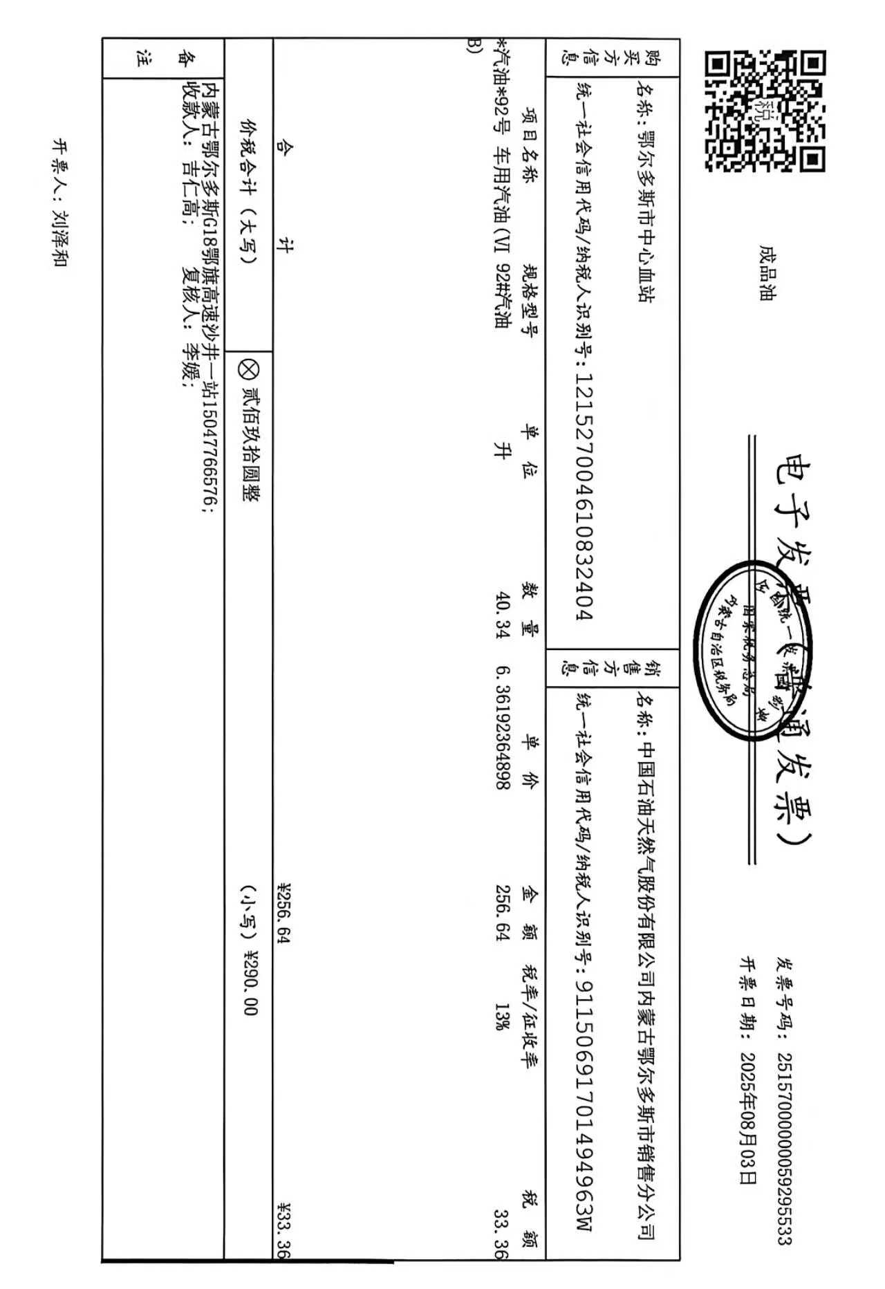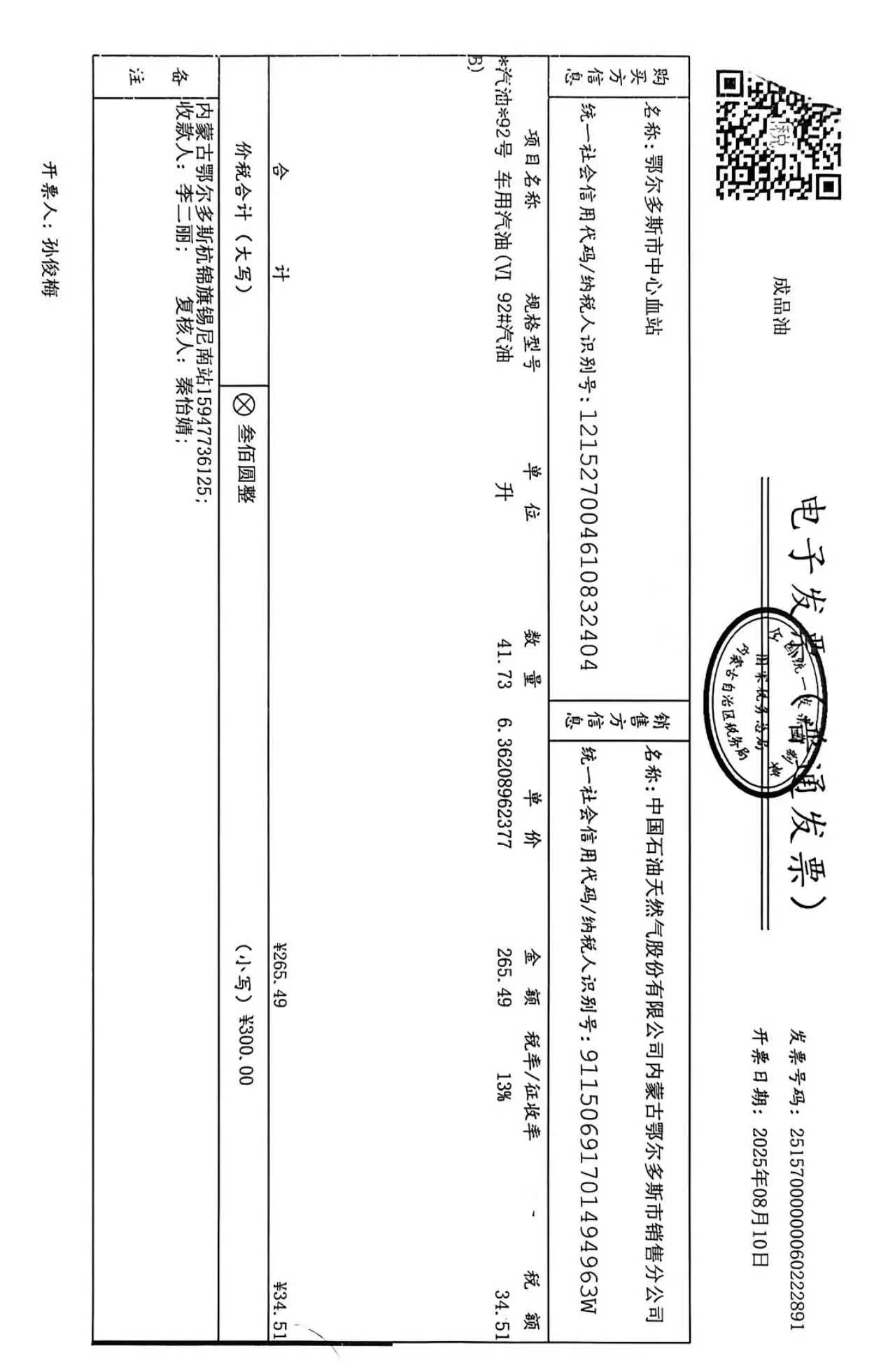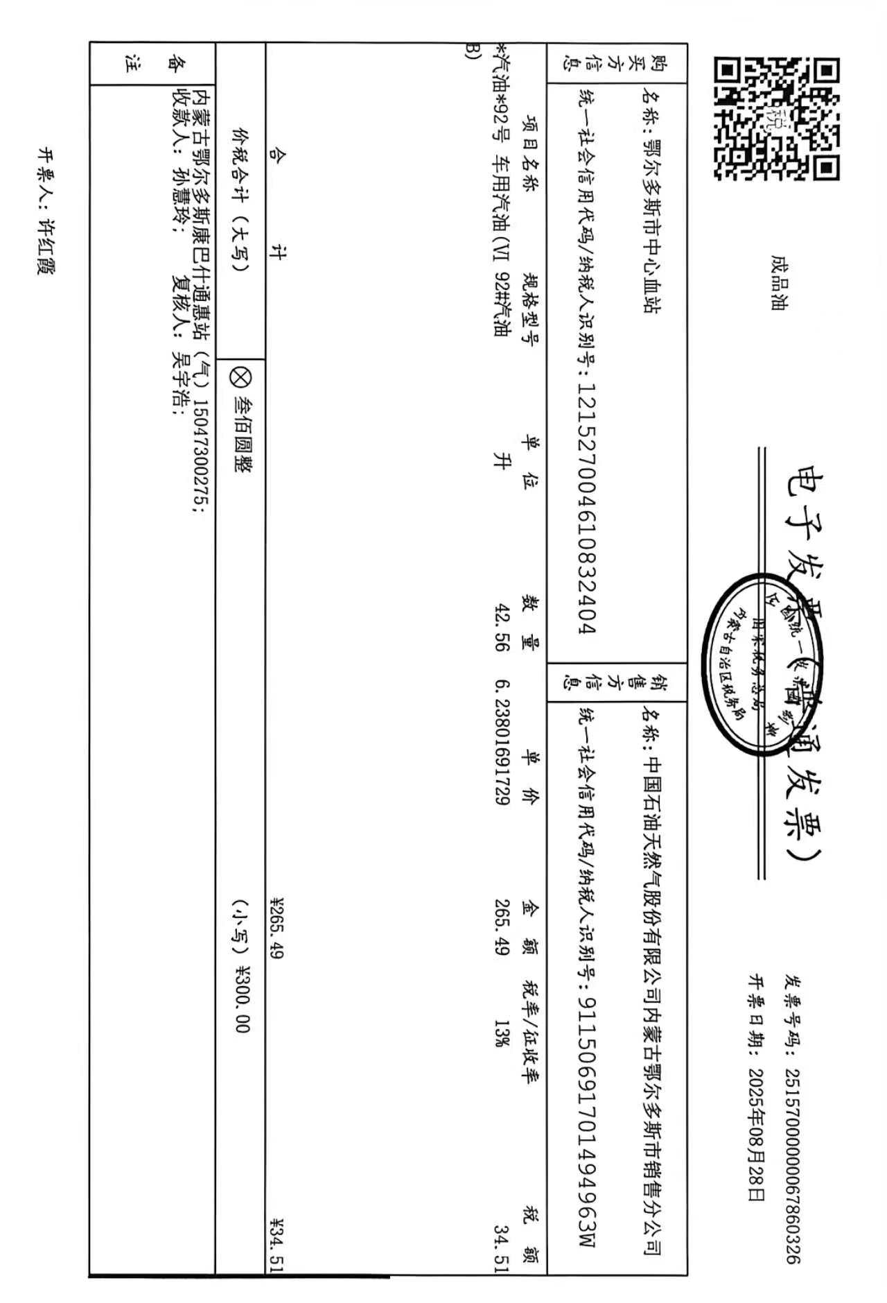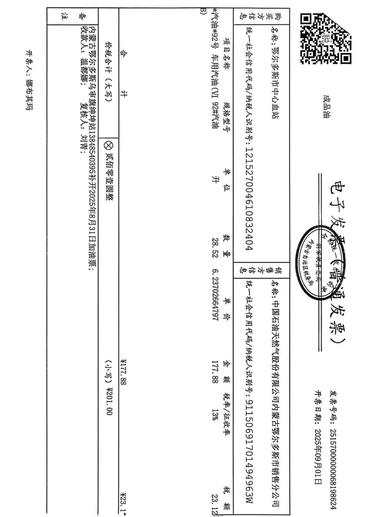 鄂尔多斯市中心血站蒙******车辆八月用油政府采购合同公告