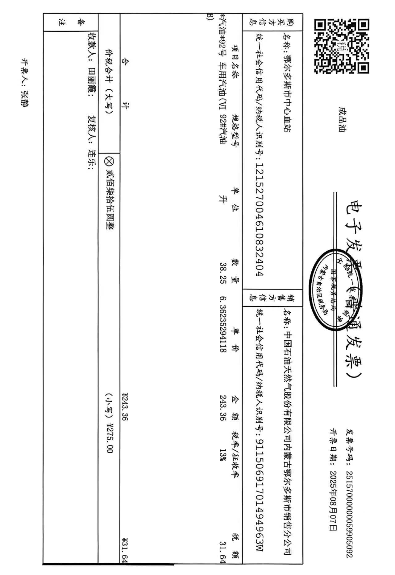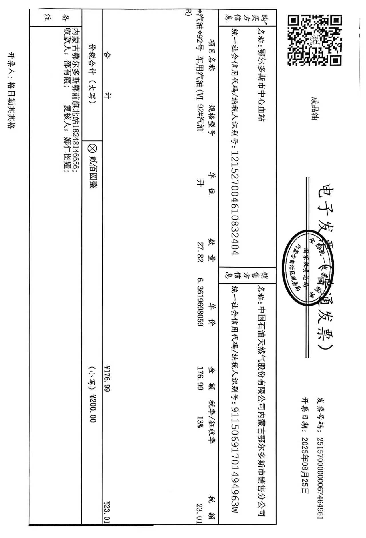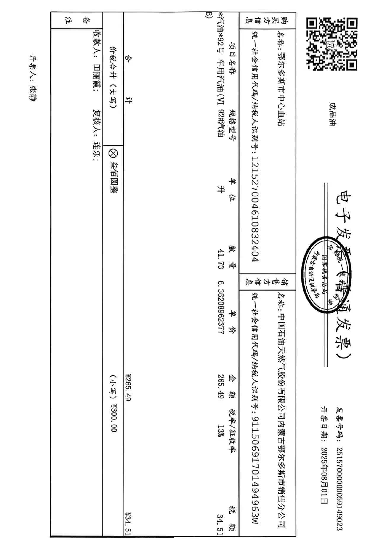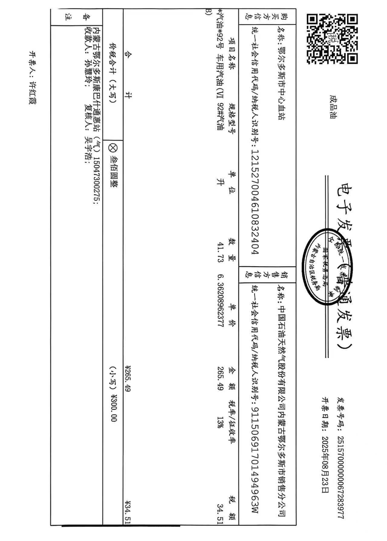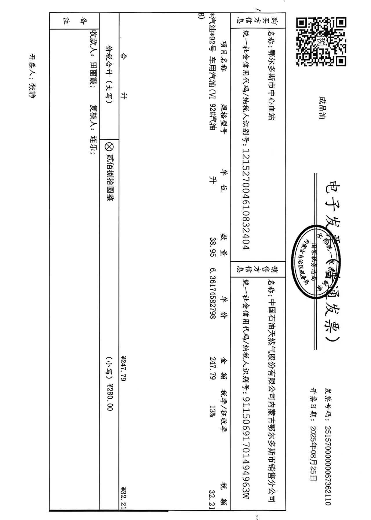 鄂尔多斯市中心血站蒙******车辆八月用油政府采购合同公告