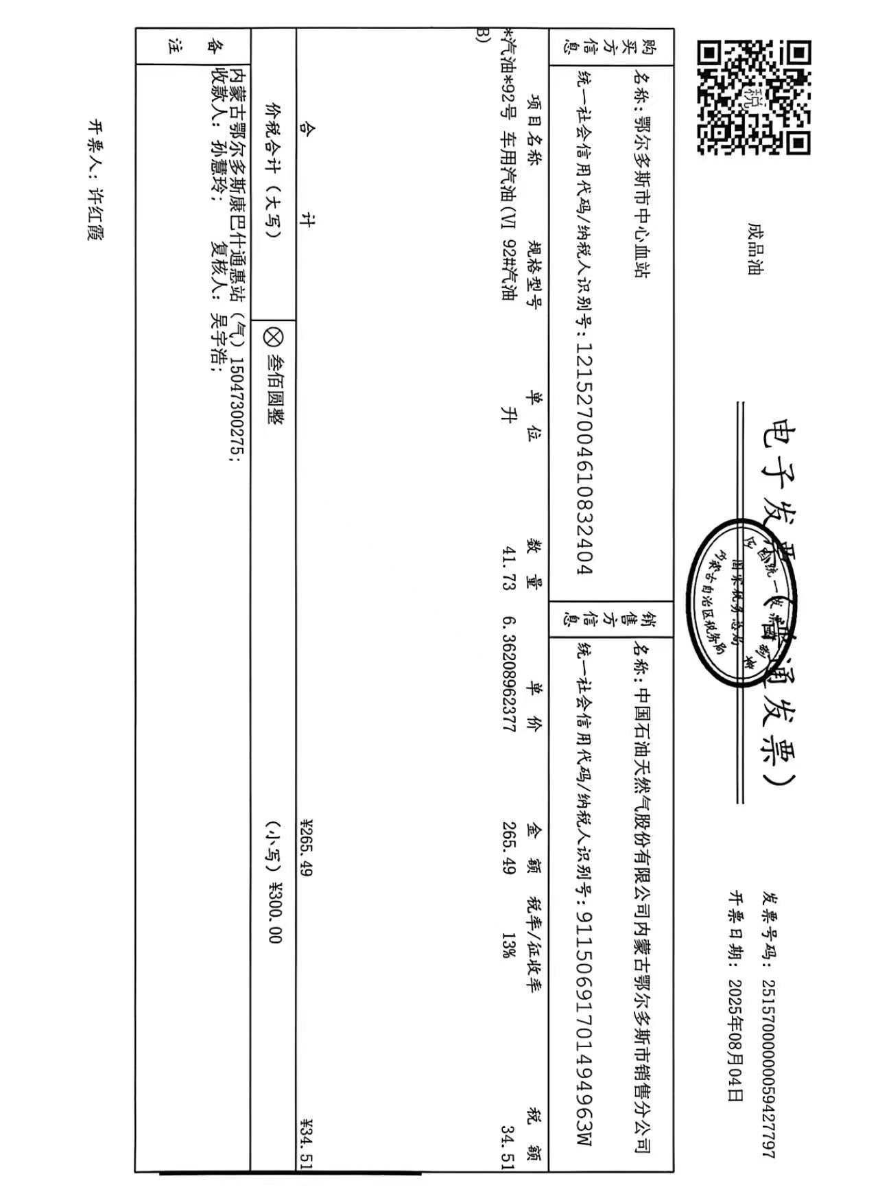 鄂尔多斯市中心血站蒙K93X59车辆八月用油政府采购合同公告