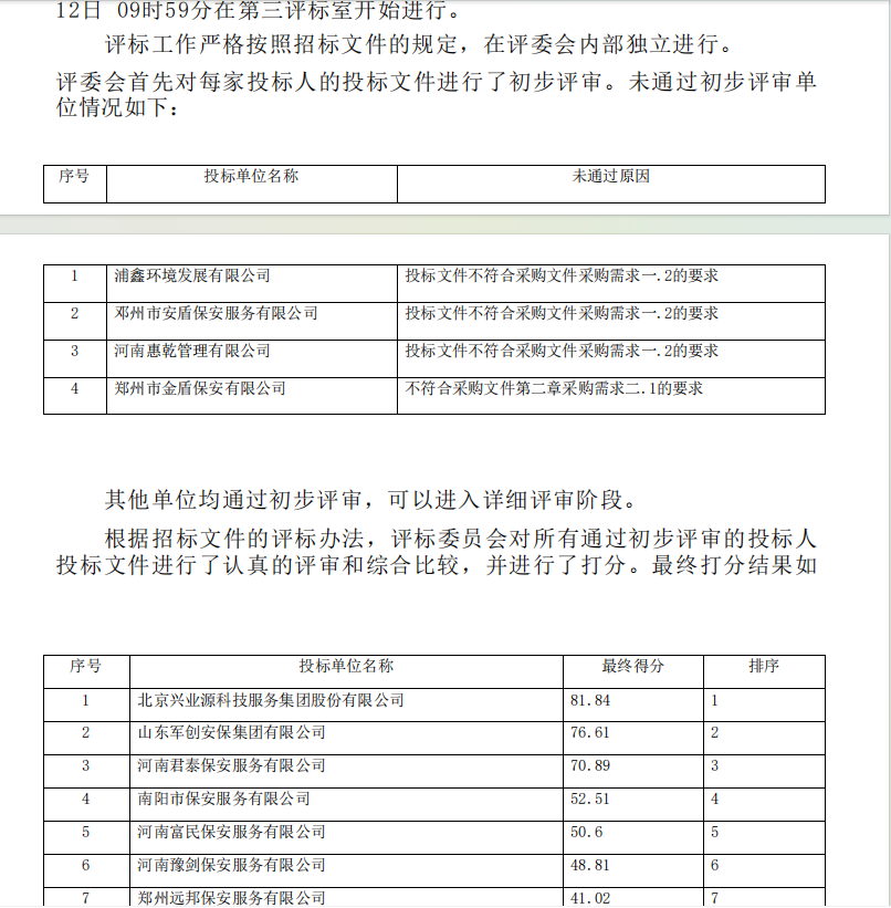 南阳农业职业学院校园保安服务采购项目-中标公告