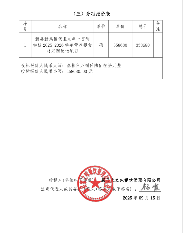 新县新集镇代咀九年一贯制学校2025-2026学年营养餐食材采购配送项目-成交公告
