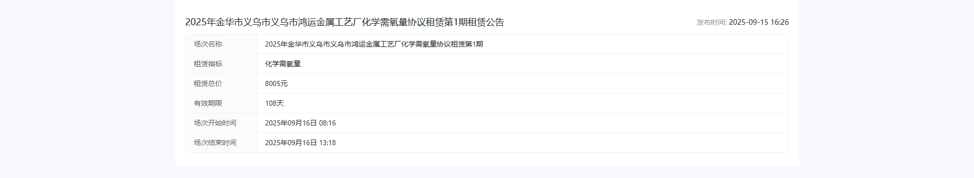 华市义乌市义乌市鸿运金属工艺厂化学需氧量协议租赁第*期租赁公告